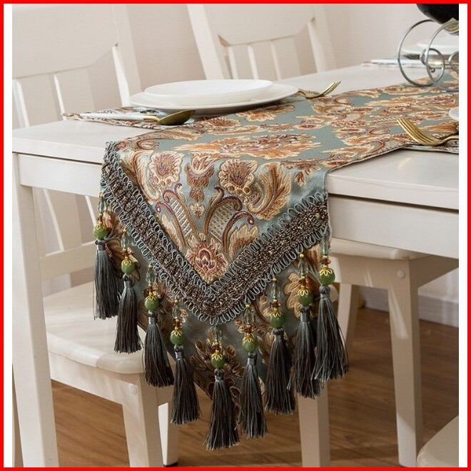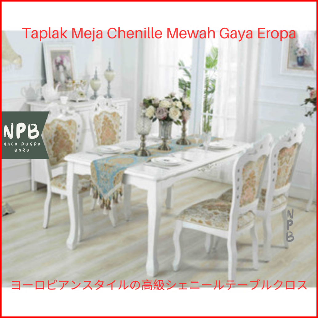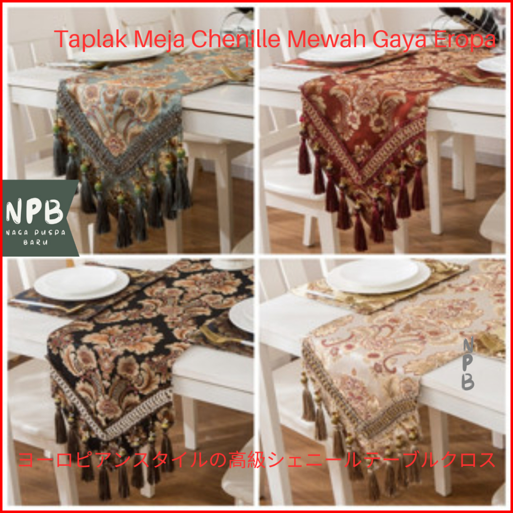 Taplak Meja Chenille Mewah Gaya Eropa - Luxury Table Runner Jacquard - Taplak Meja Mewah
