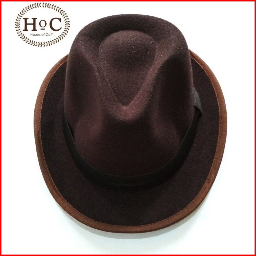 Houseofcuff Topi Fedora Hat Brown Fedora Hat Laken - Coklat