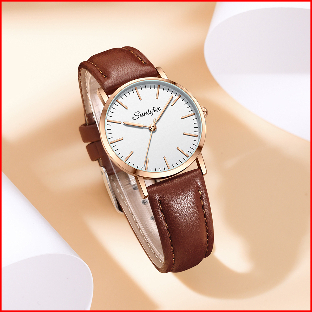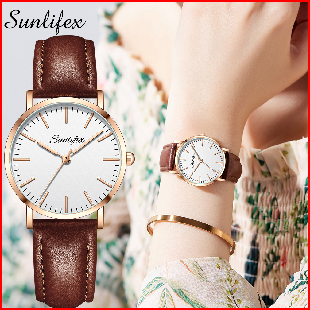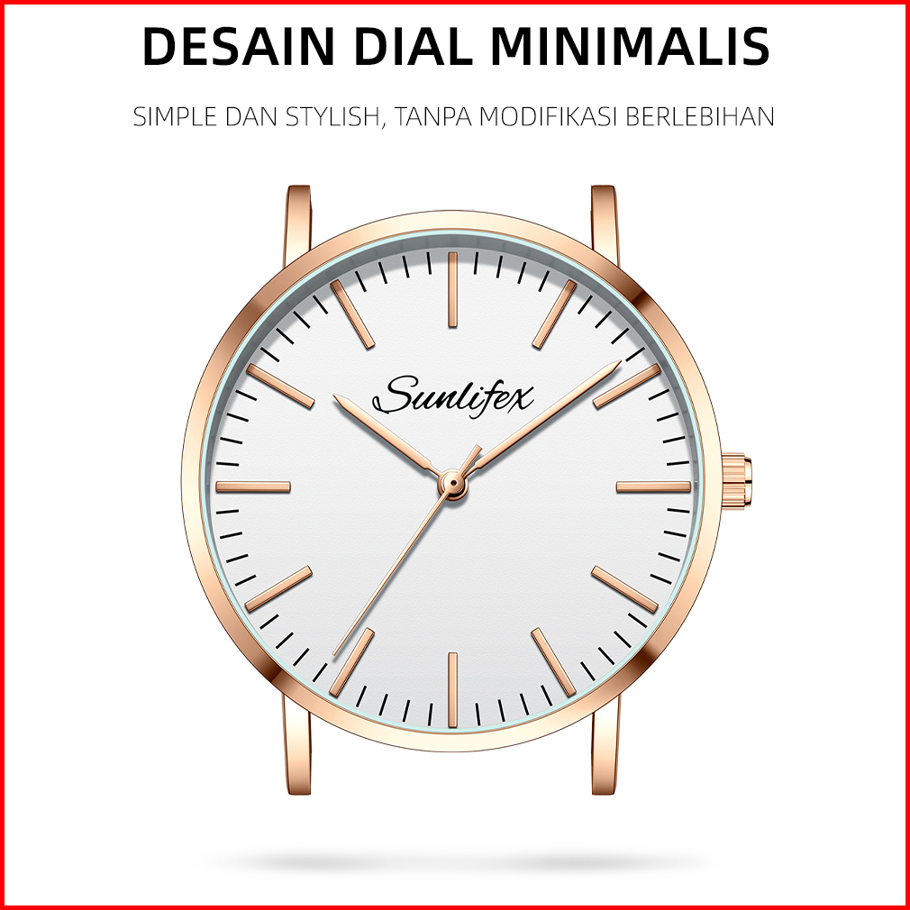 Sunlifex Jam Tangan Wanita 4533l-w Original Kuarsa Tali Kulit Wanita Elegan Klasik Jam Tangan Cewek