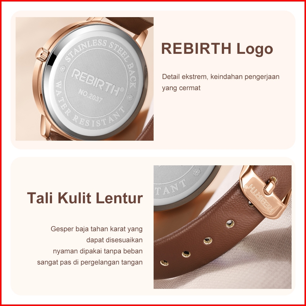 Rebirth Jam Tangan Wanita Original Anti Air Korean Elegan Kuarsa Tali Kulit Jam Tangan Cewek Kecil