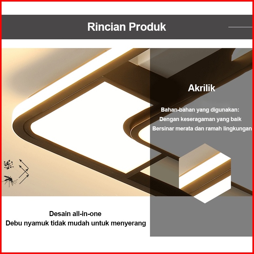 Golden Led Lampu Plafon Led 3 Warna Bentuk Persegi Gaya Nordic Minimalis Untuk Dekorasi Ruang Tamu Kamar Tidur