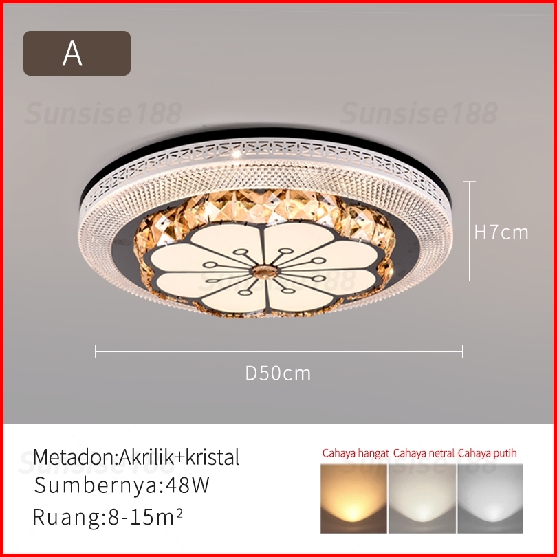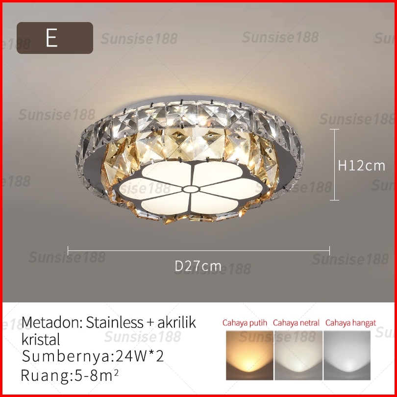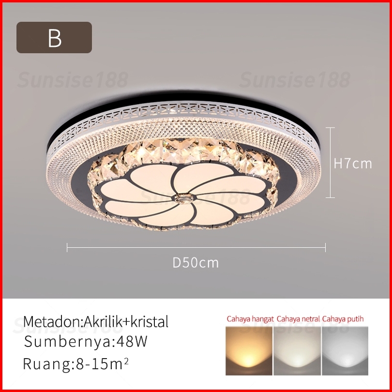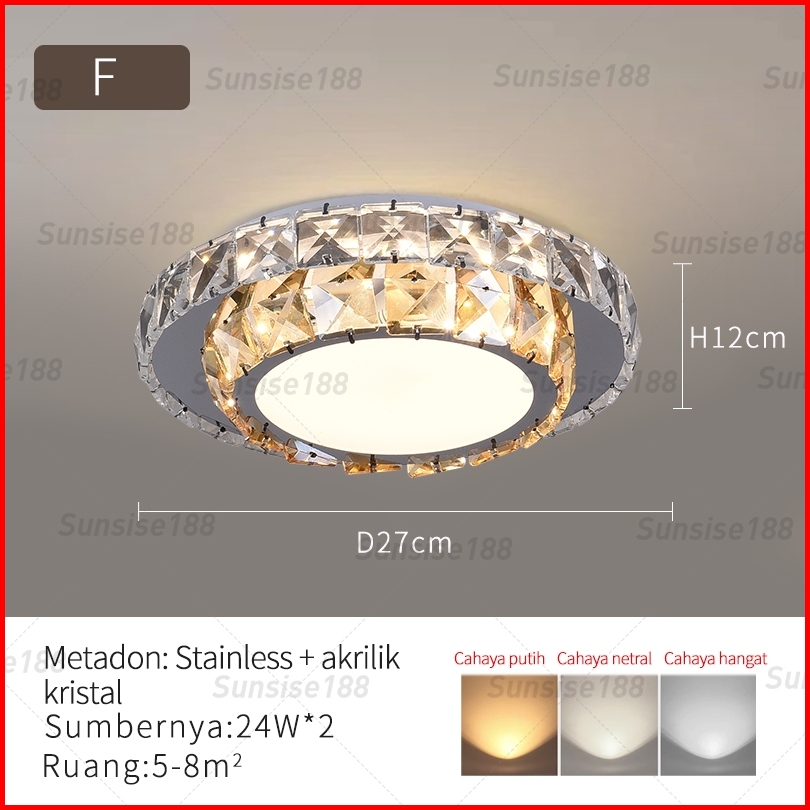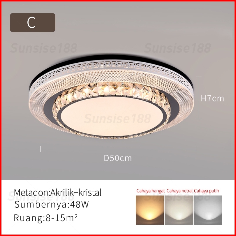 Lampu Plafon Kristal Led 3 Warna Lampu Plafon Hias Bulat Lampu Hias Ruang Tamu Kamar Tidur