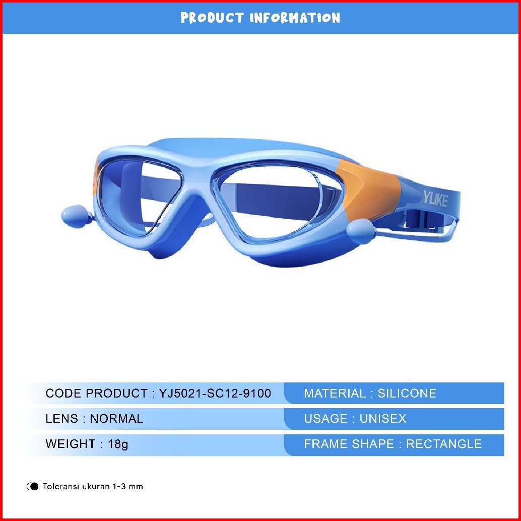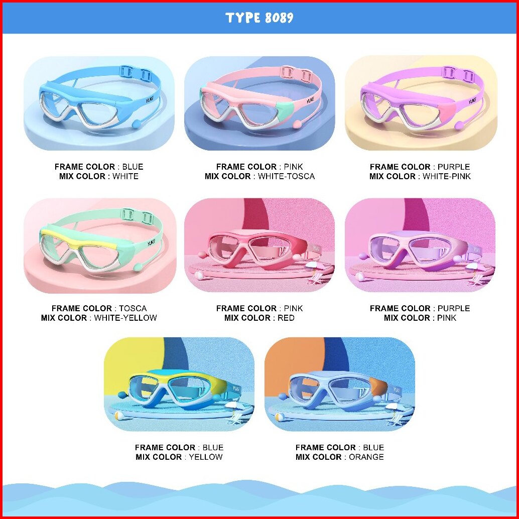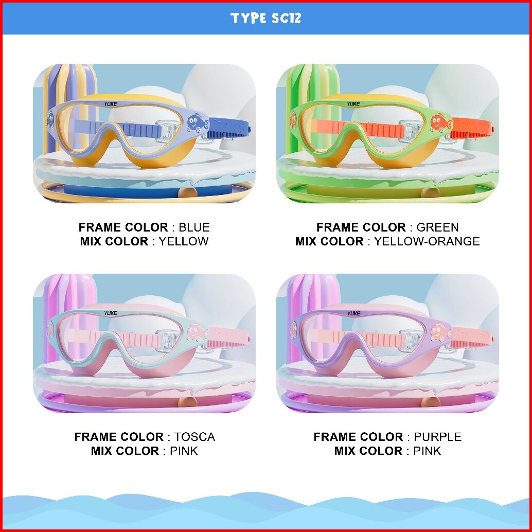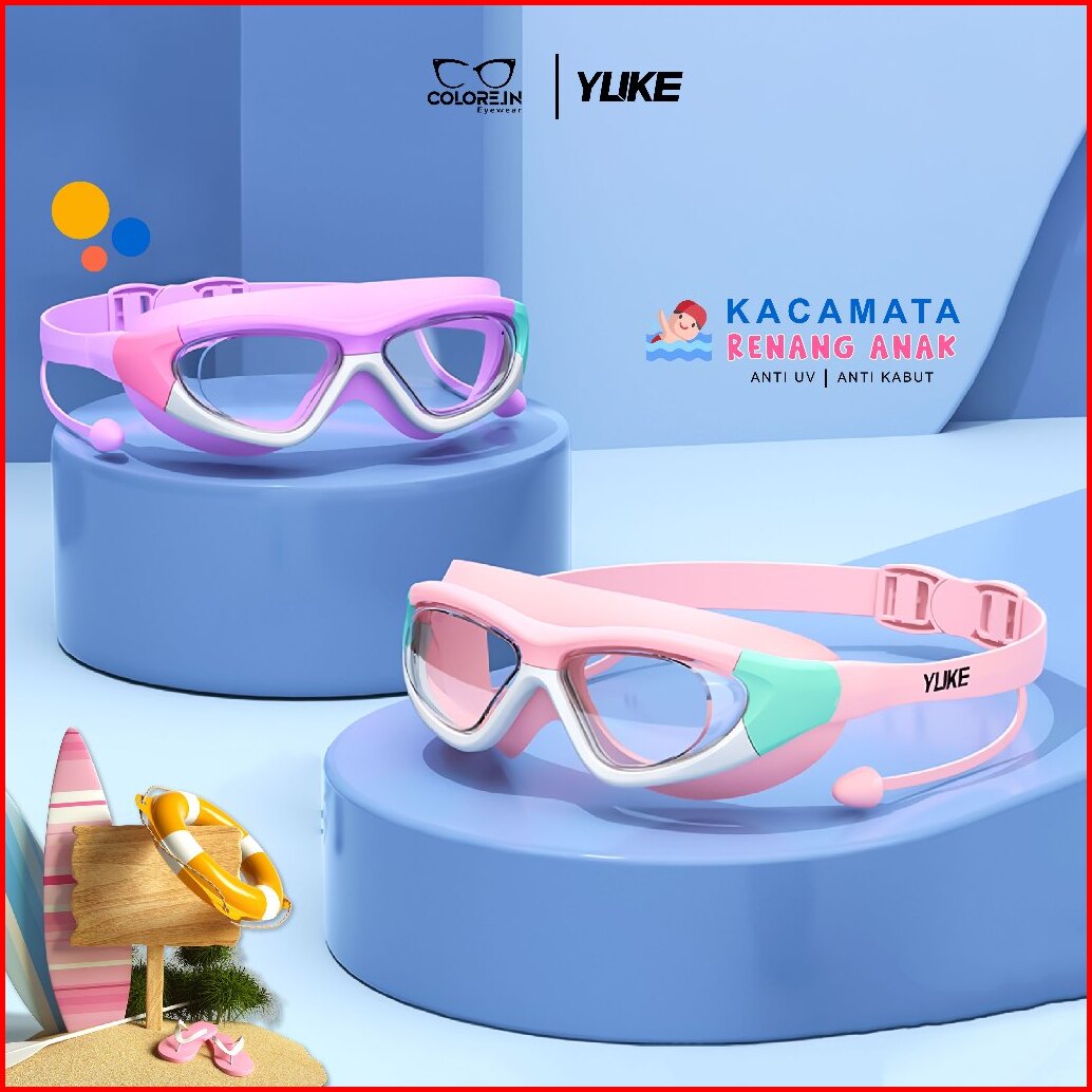 Colore.in Kacamata Renang Anak Perempuan Laki Laki Swimming Hydrofobik Anti Uap Karet Silikon Eartip Antifog Yj5021-sc12