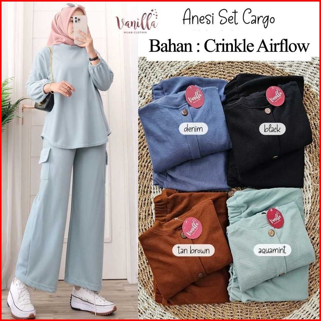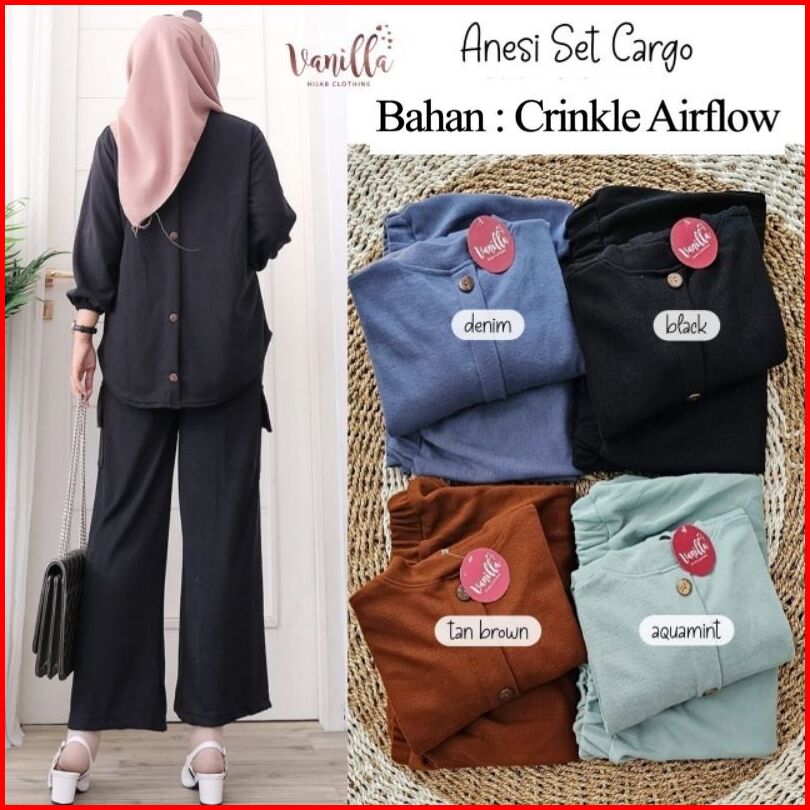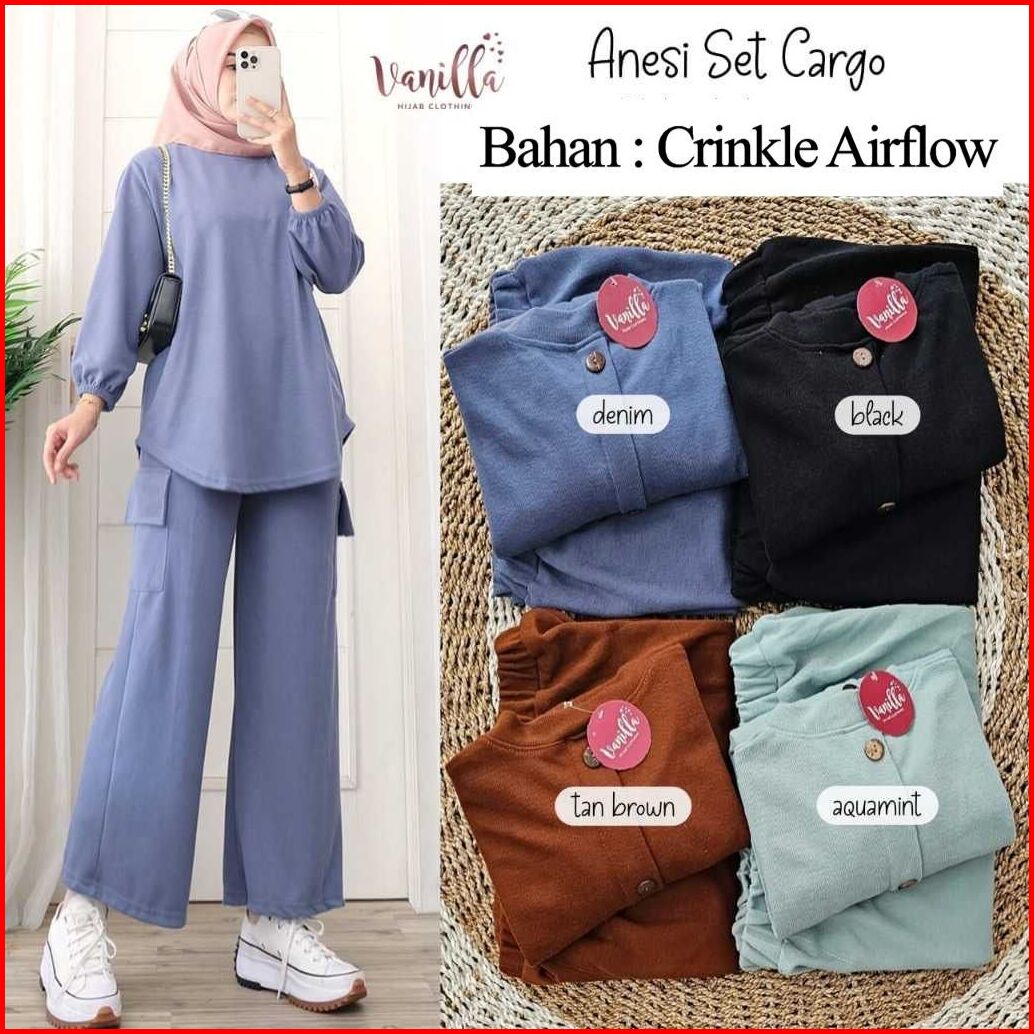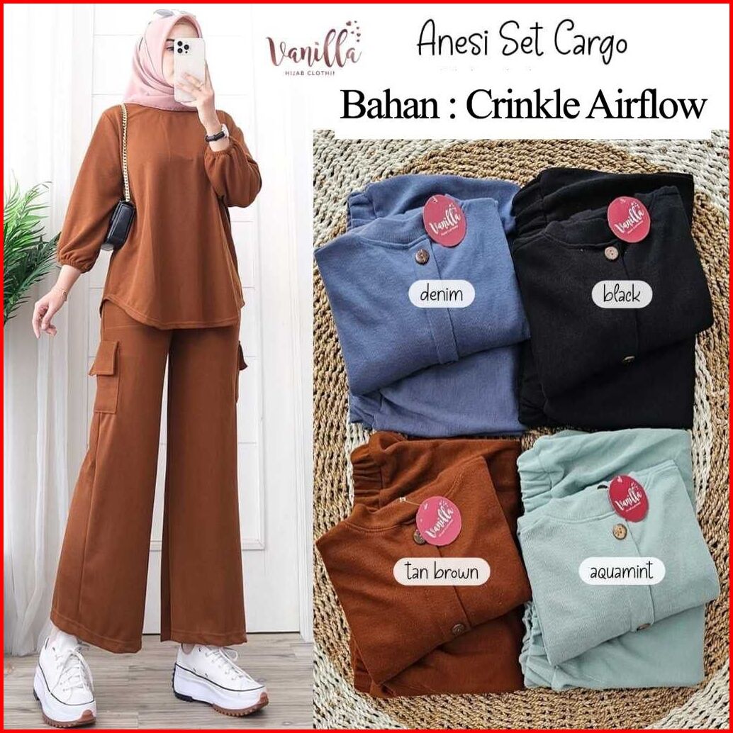 Anesti Set Kancing Belakang Celana Cargo Crinkle Airflow Ld 110 Setelan Polos Anesti One Set Divya Setelan Celana Cargo