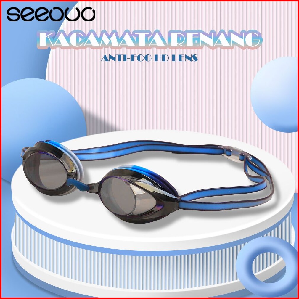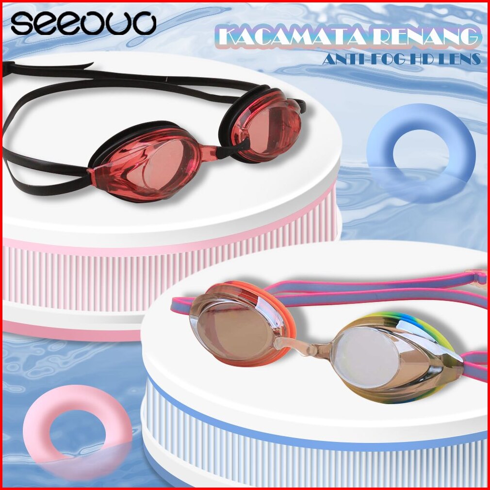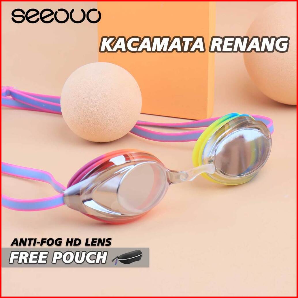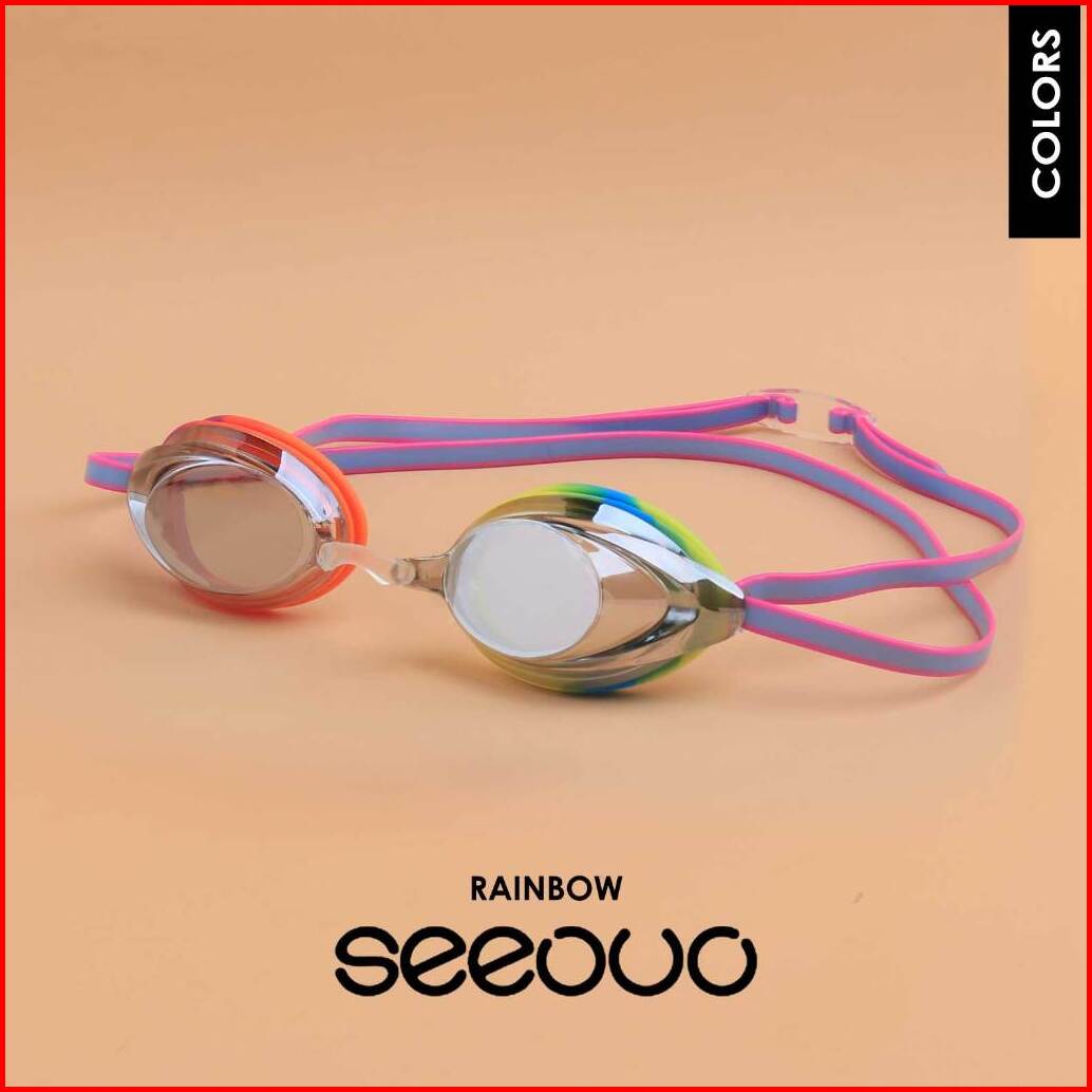 Seeouo Kacamata Renang Swimming Goggles Dewasa Anti Fog Hd-lens Silicone Rainbow Pria Wanita 1300
