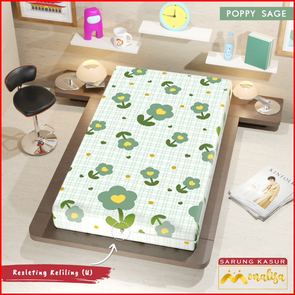 Ukuran 100x200x15 Grosir Sarung Kasur Busa Sprei Resleting Monalisa