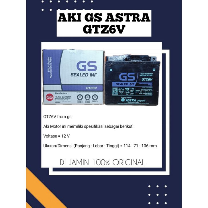 AKI MOTOR GS ASTRA GTZ6V Produk Berkualitas dan Original