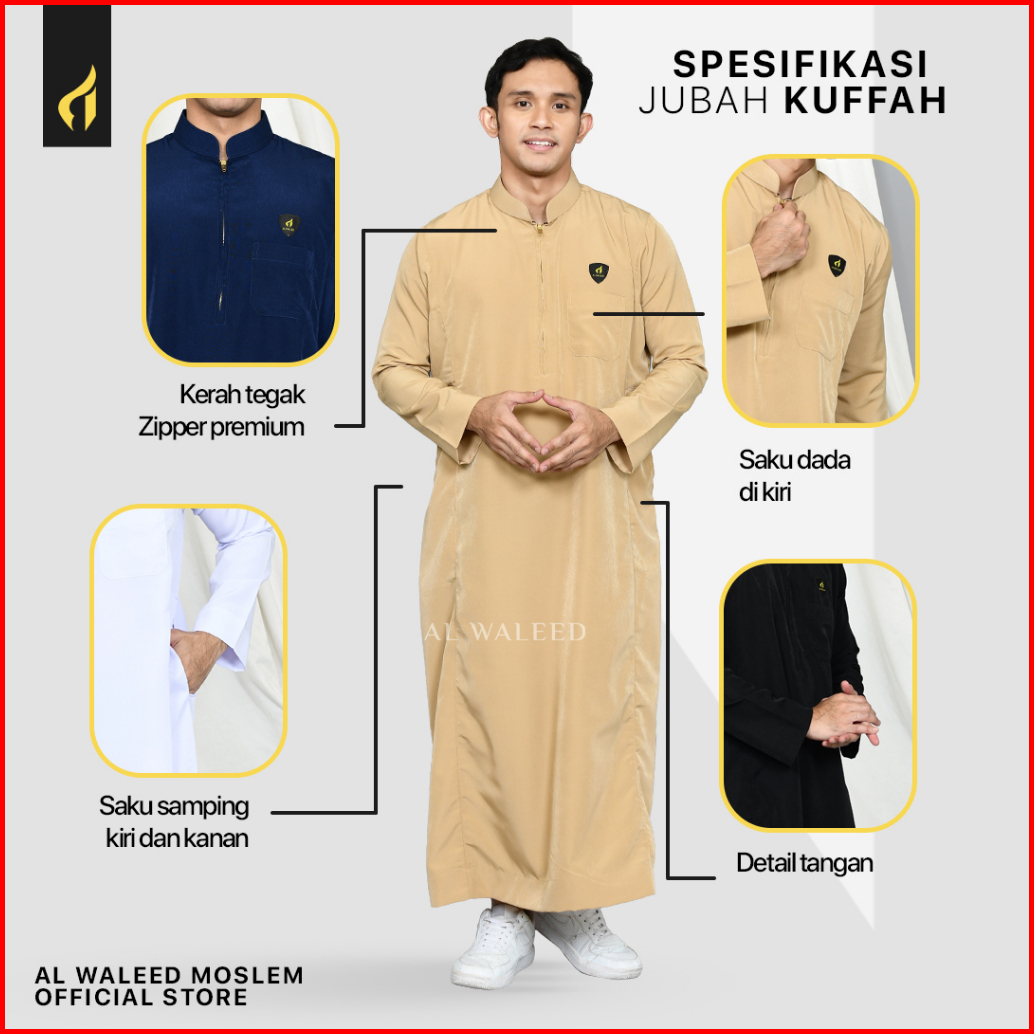 Al Waleed Moslem Jubah Basic Lengan Panjang Oblong Warna Hitam