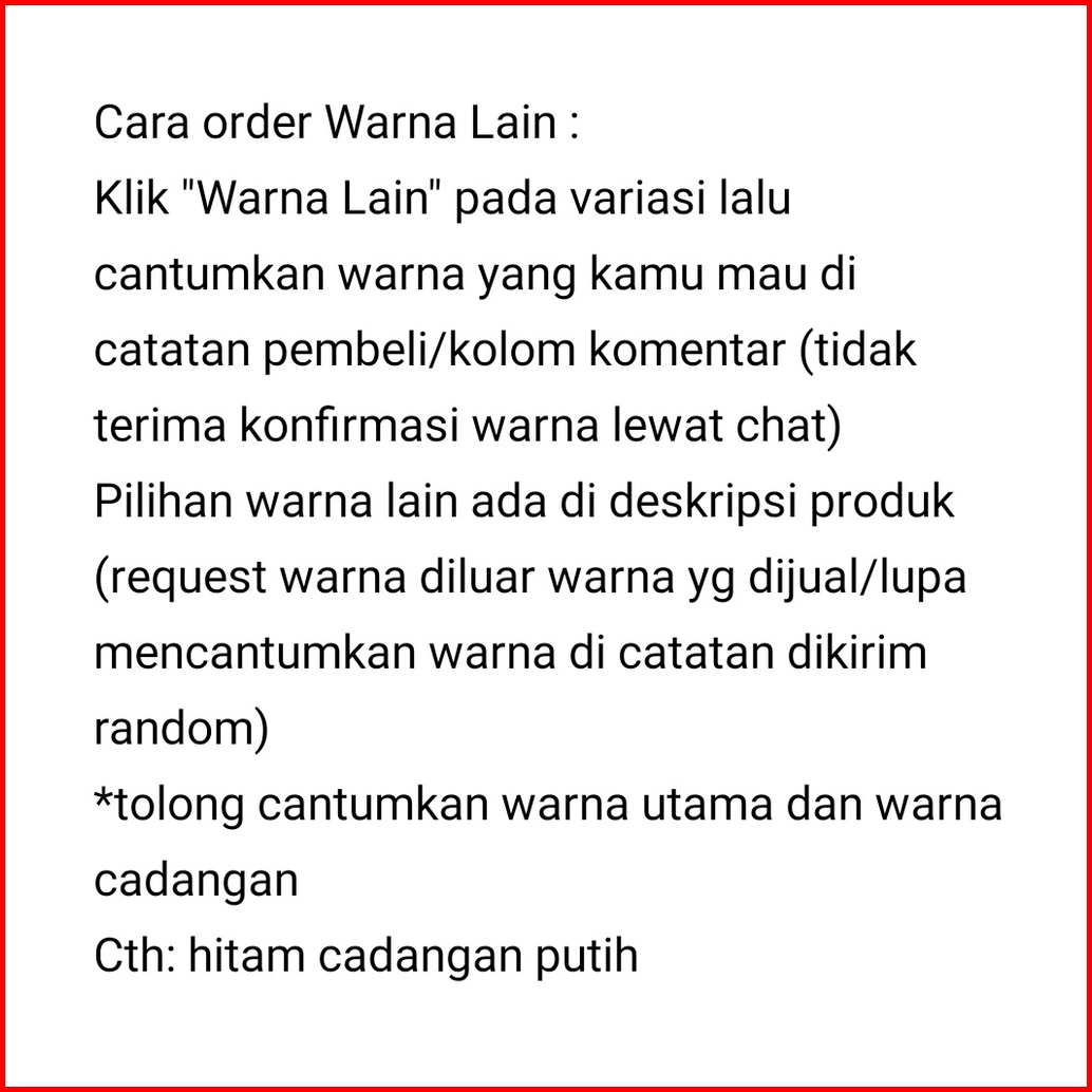ABU MUDA, ABU TUA, BEIGE, MOCCA, ARMY, HITAM, MAROON, PINK BABY, PUTIH, KUNING, SAGE GREEN, GREEN LIME, MINT, PEACH, STEEL BLUE, ELDERBERRY, LILAC, LATTE, SALMON, DUSTY PINK, NAVY, HIJAU BOTOL, HIJAU STABILO, RANDOM MOTIF & WARNA, WARNA LAIN DI NOTE