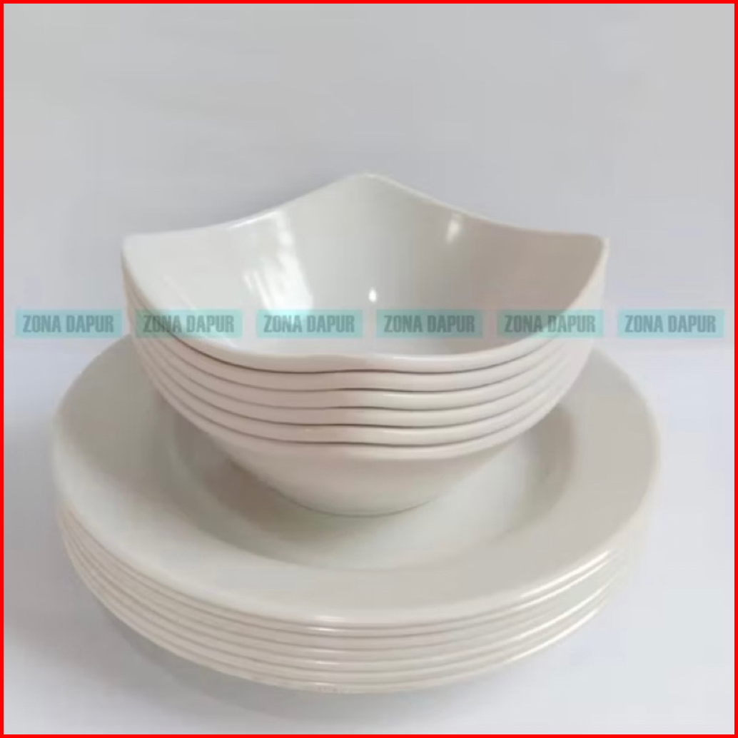 Paket Hemat Isi 6pcs - Piring Melamine 9 Inch - Mangkuk Melamin 6 Inch - Piring Saji Mangkok Saji