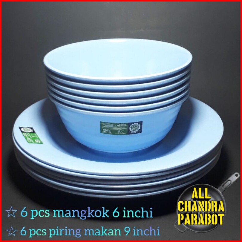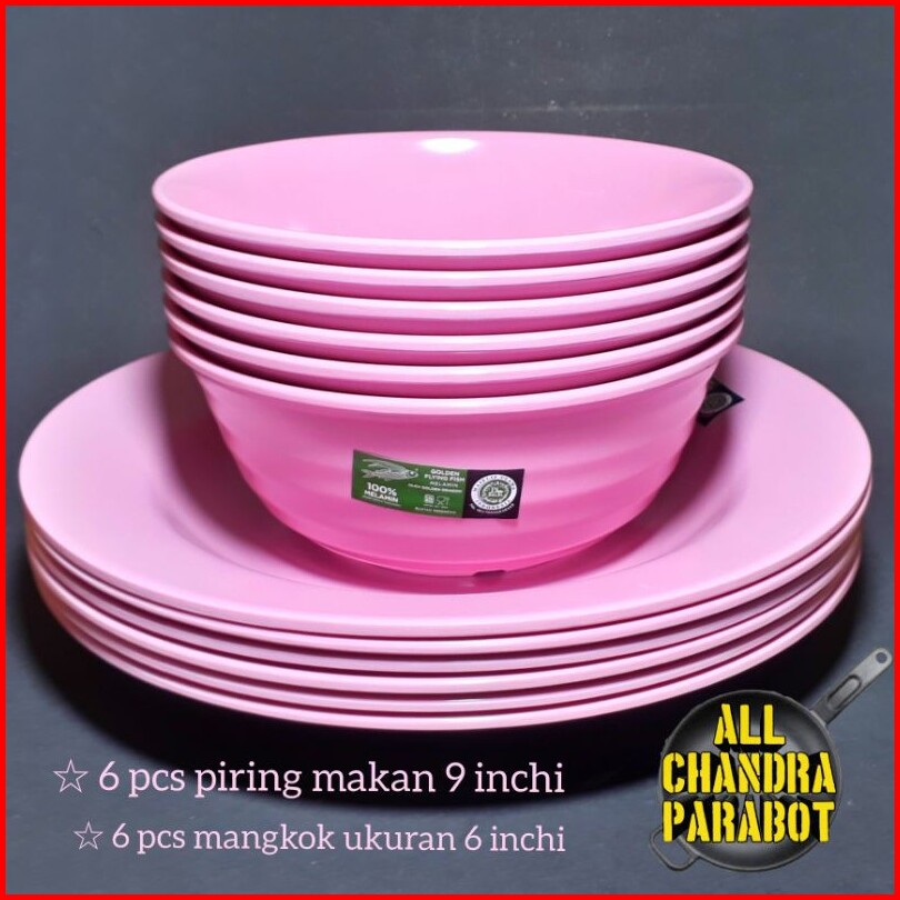 Piring Mangkok Melamin Ware Golden Flying Fish Isi 12 Pcs Dan Isi 6 Pcs