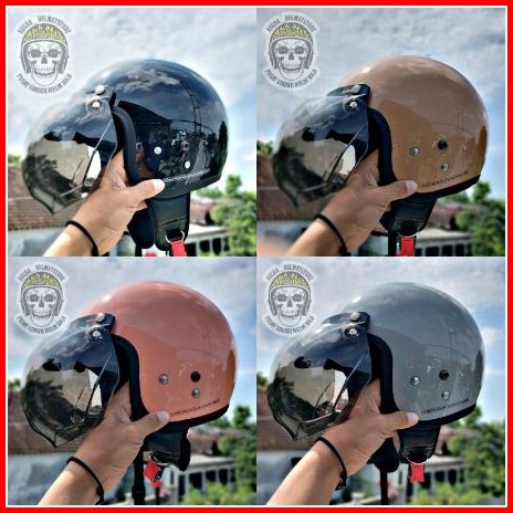 Helm Bogo Dewasa Kaca Cembung Full Leher Kaca Flat Sni
