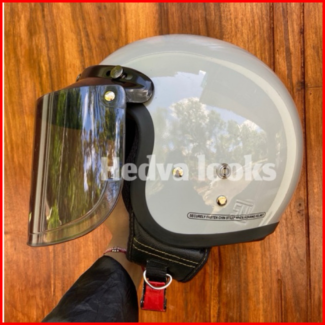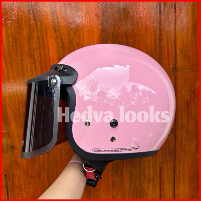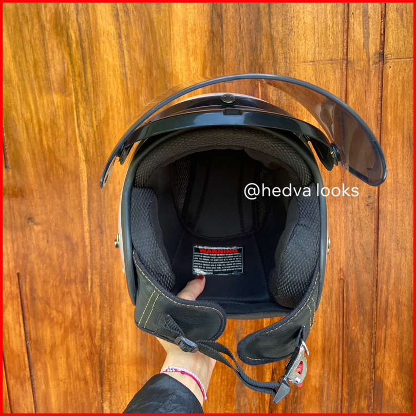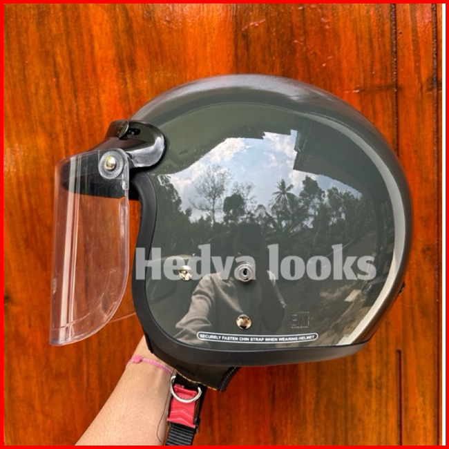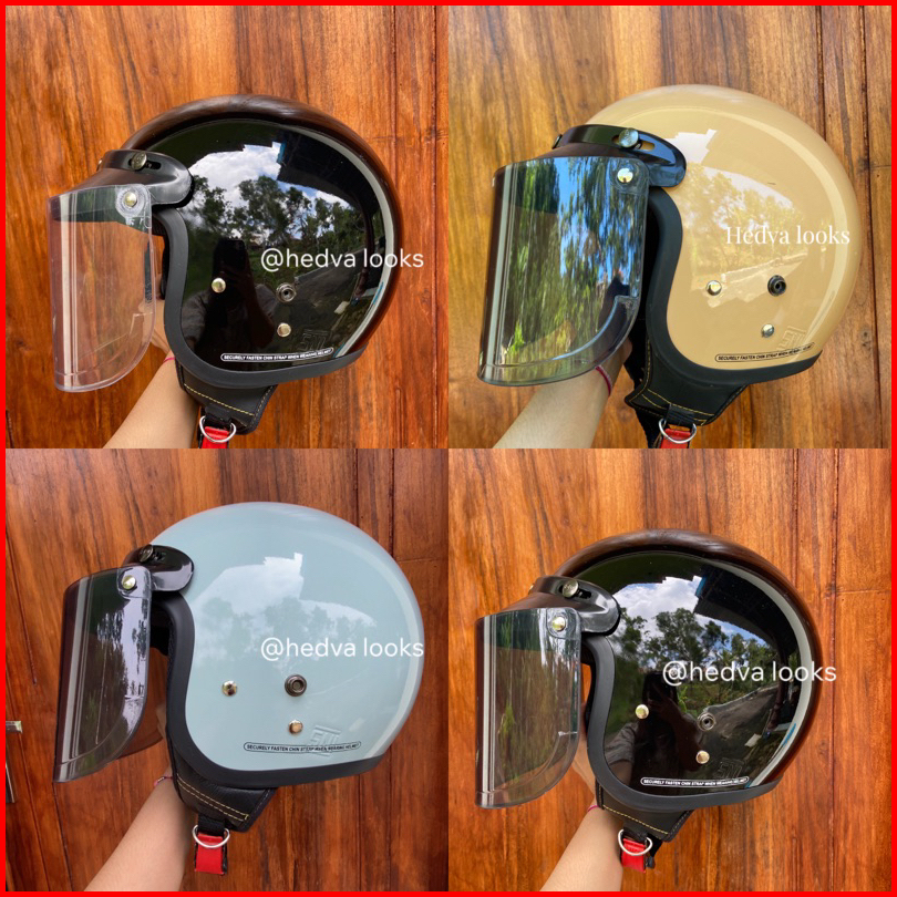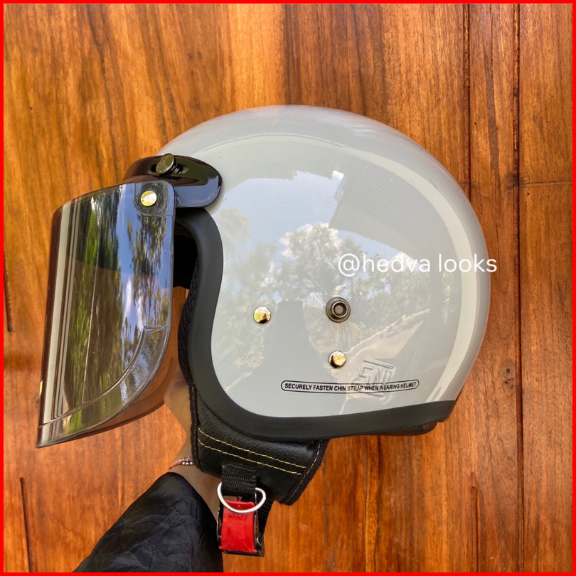Helm Bogo Dewasa Kaca Datar Full Leher Sni Polos Retro
