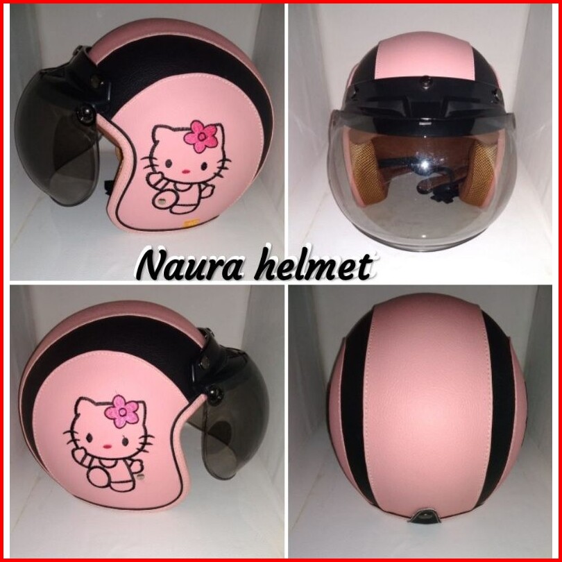 Helm Bogo Retro Dewasa Motif Hello Kitty Pink
