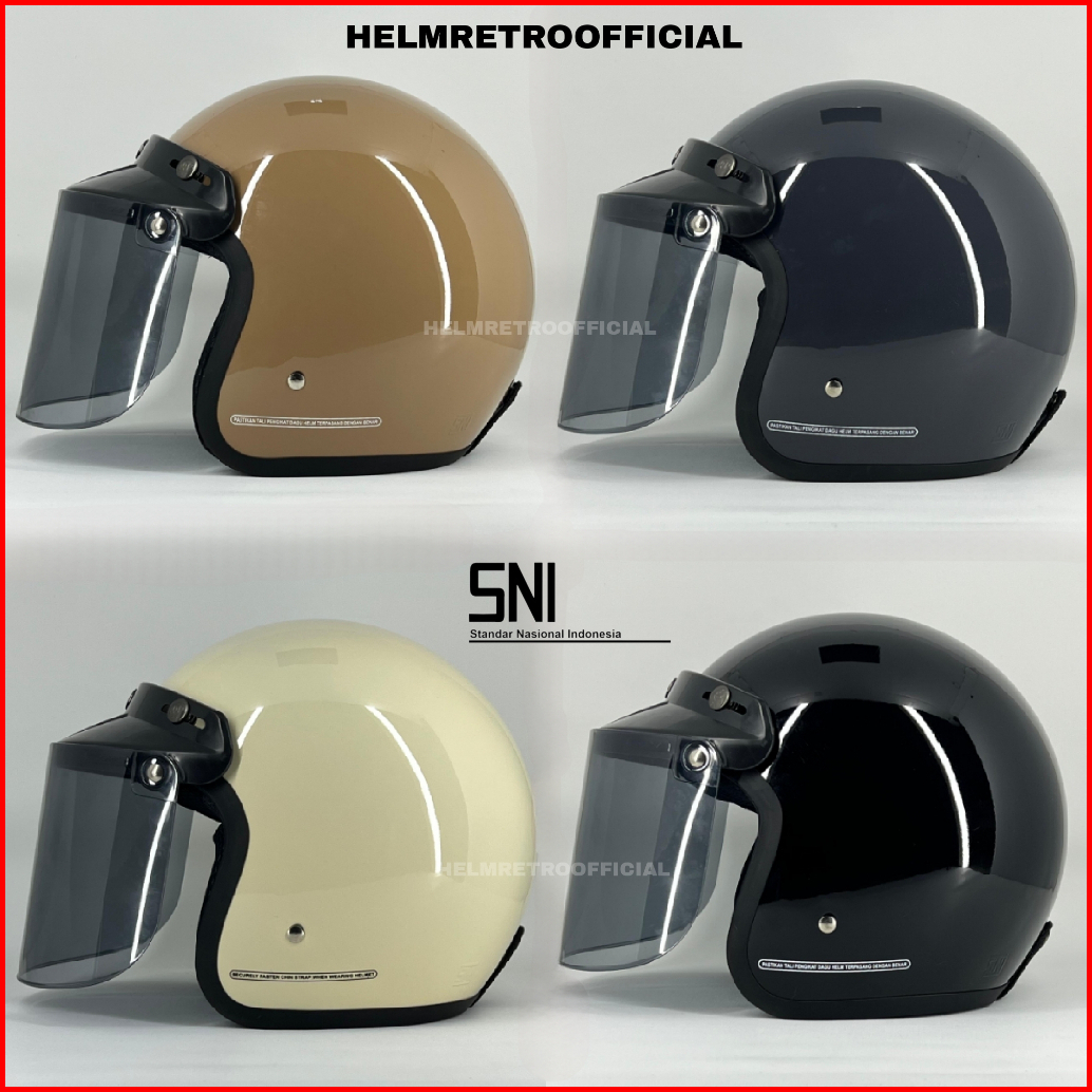 Helm Bogo Retro Classic Polos Dewasa Sni Kaca Datar Kaca Cembung