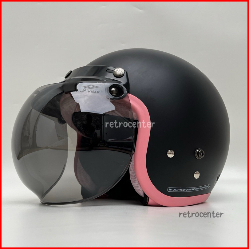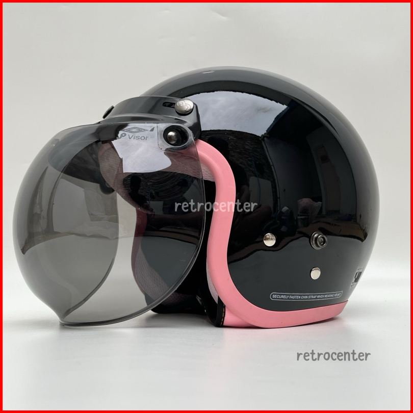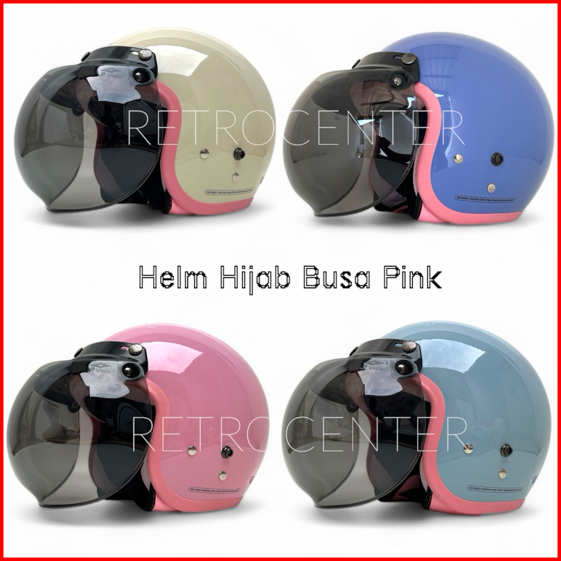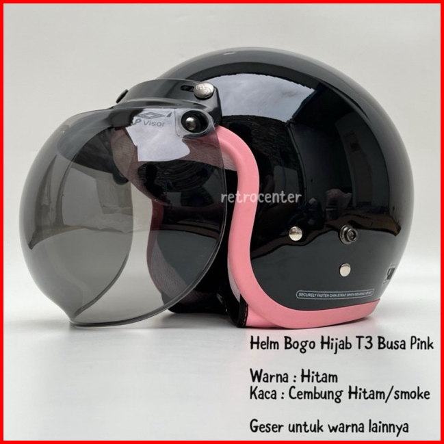 Helm Wanita Hijab Premium Kaca Cembung Hitam Helm Retro Dewasa Helm Bogo Wanita Helm Hijab Sni