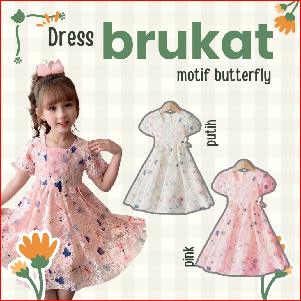 Little Dream 1-8 Tahun Dress Brukat Butterfly Gaun Anak Perempuan Sifon Katun Kids Cewek Princess