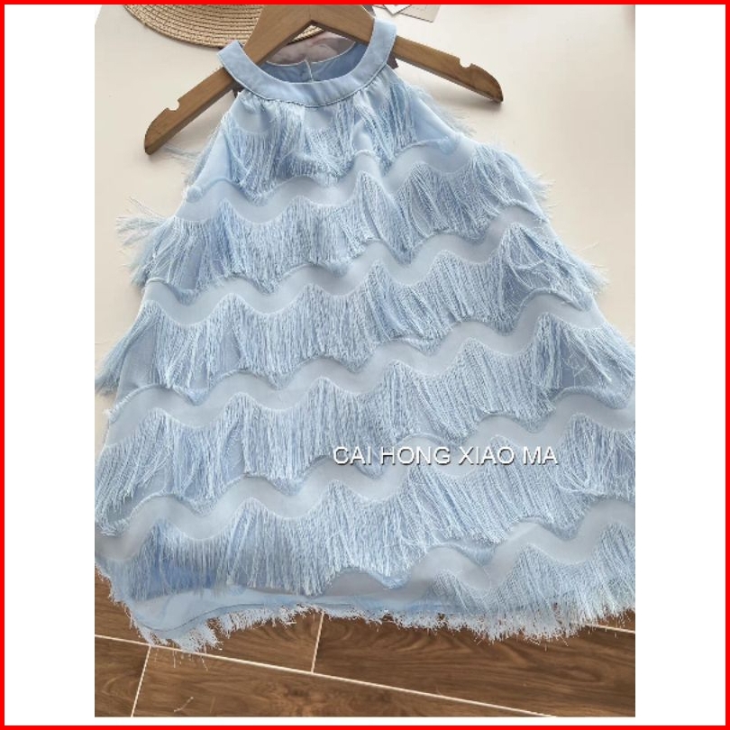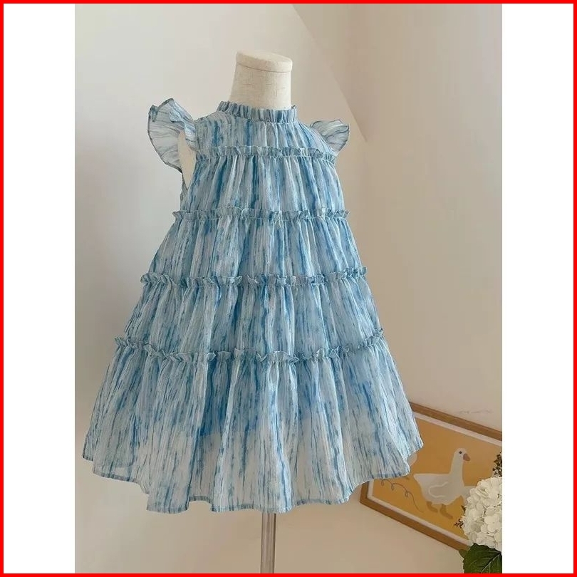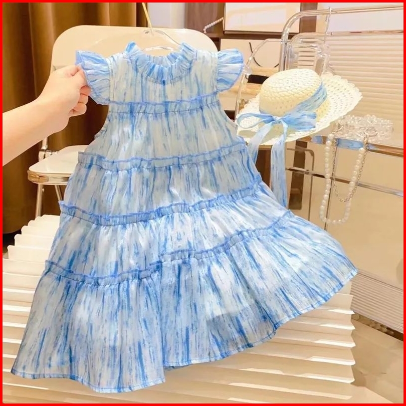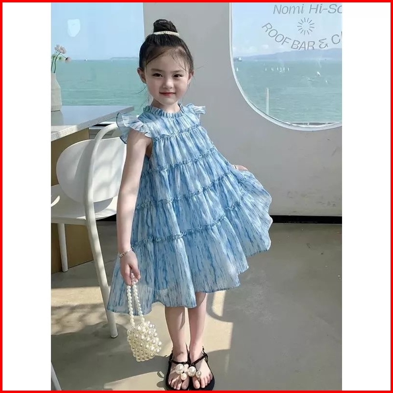 Babyleona Birthday Dress Anak Perempuan Dress Pantai Size 1-8thn Biru Blue 2warna Original Ada Pita Beakang.