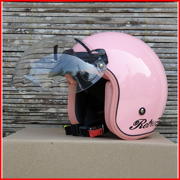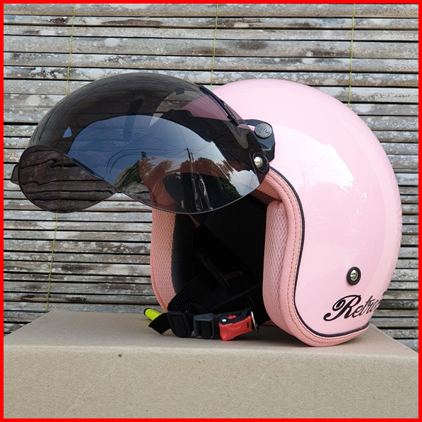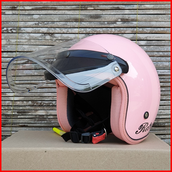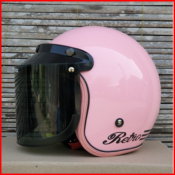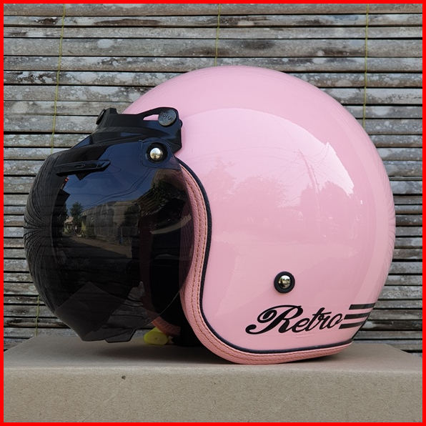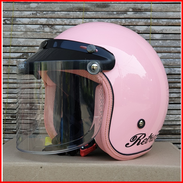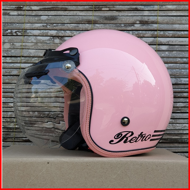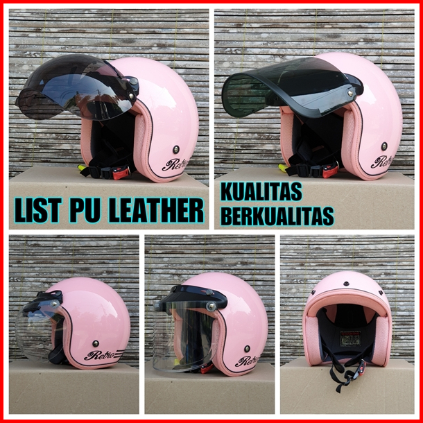 Helm Bogo Retro Wanita Dewasa Busa Dalam Helm Warna Pink List Helem Pu Leather Anti Gores