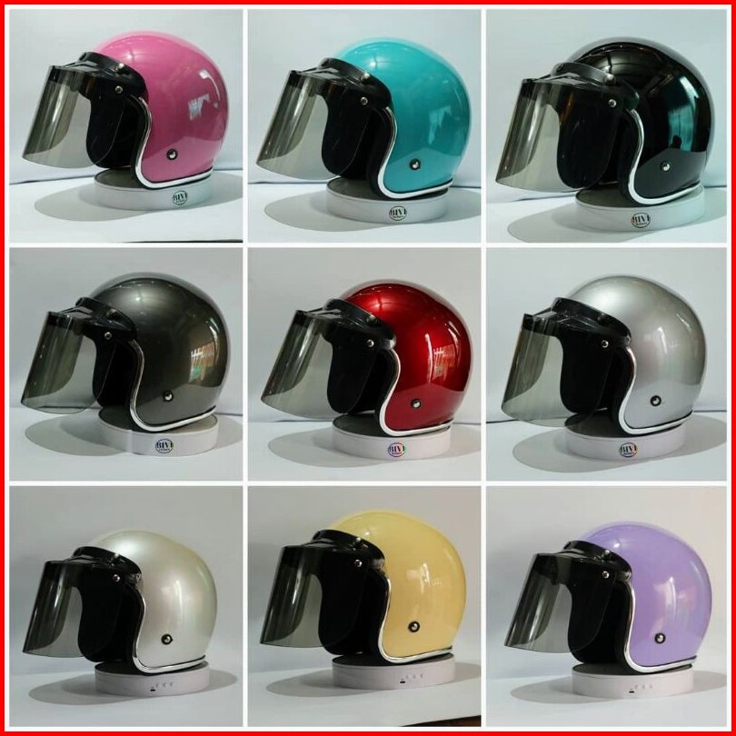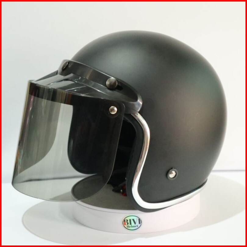 Helm Bogo Retro List Chrome Crome Dewasa Kaca Datar