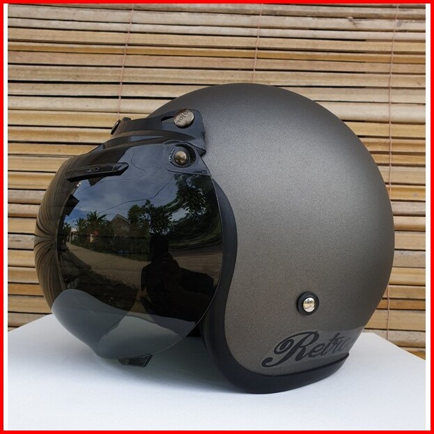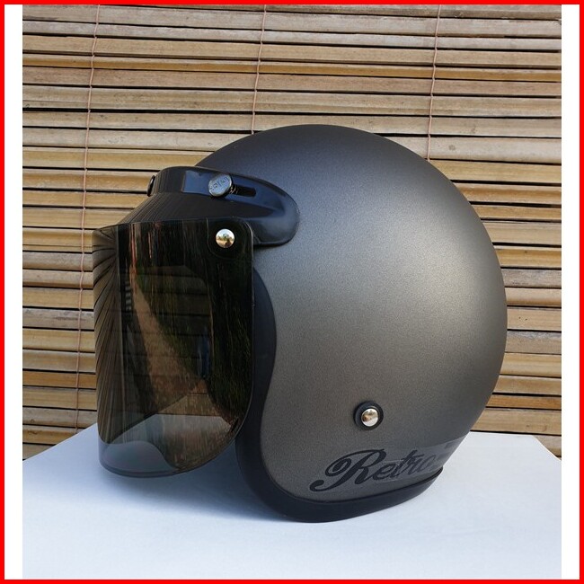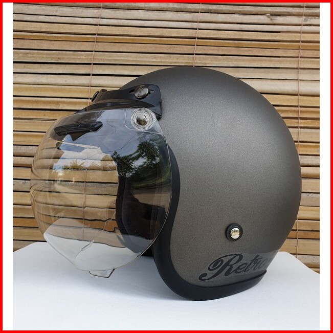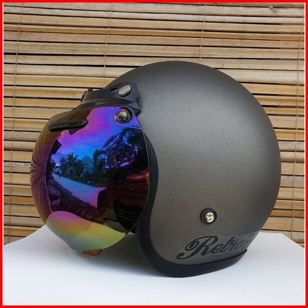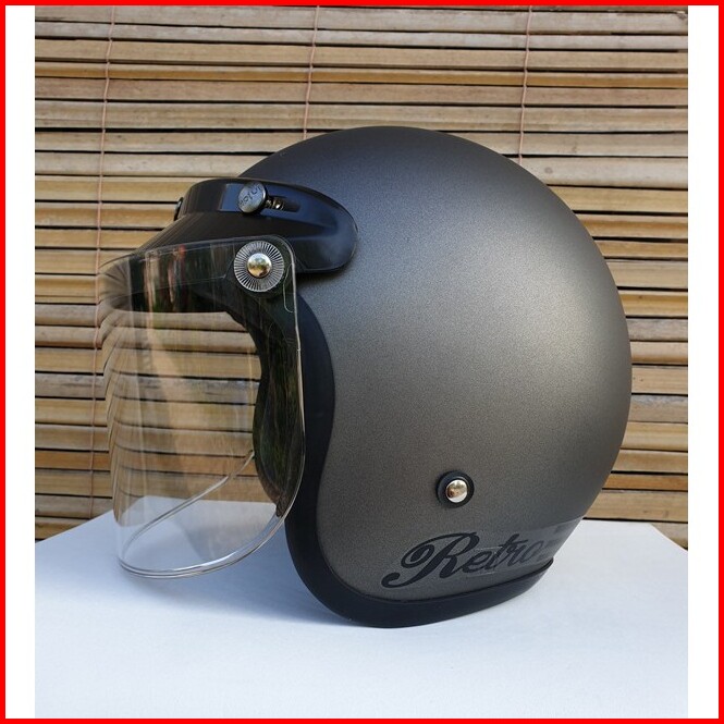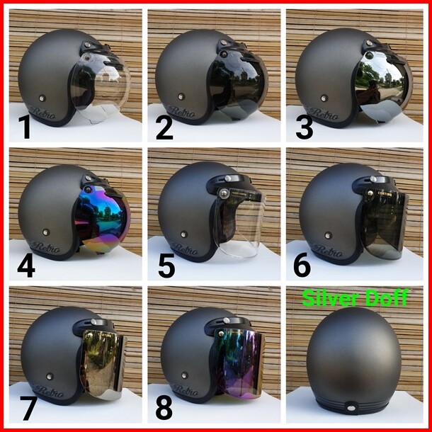 Helm Bogo Retro Vespa Warna Silver Doff Untuk Wanita Pria Cewek Cowok Dewasa