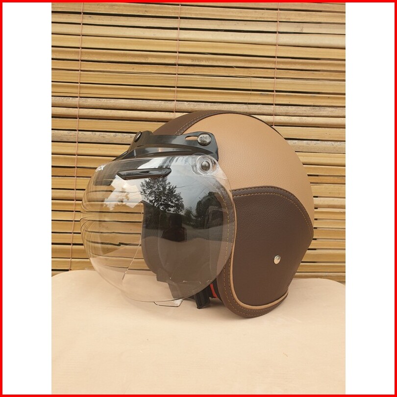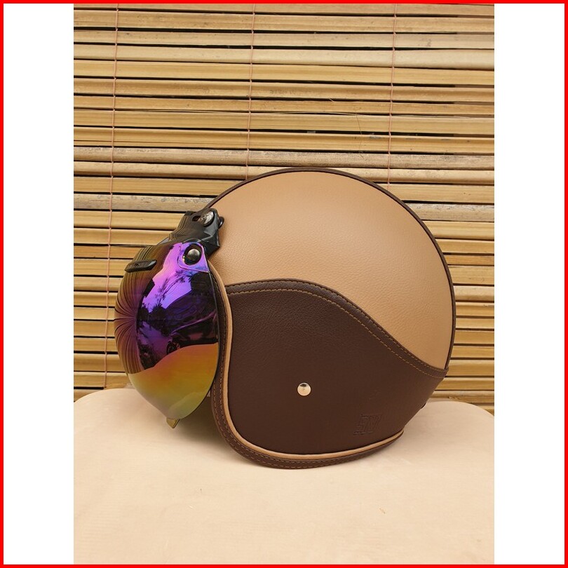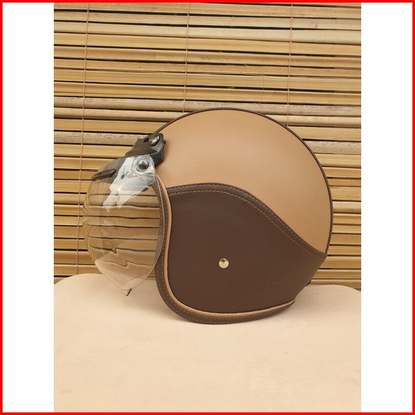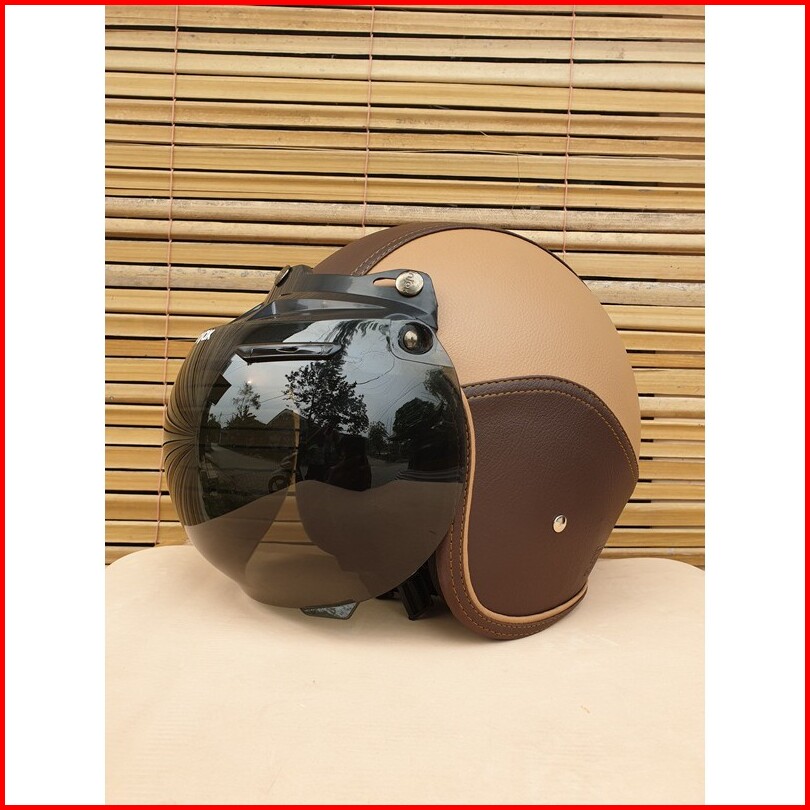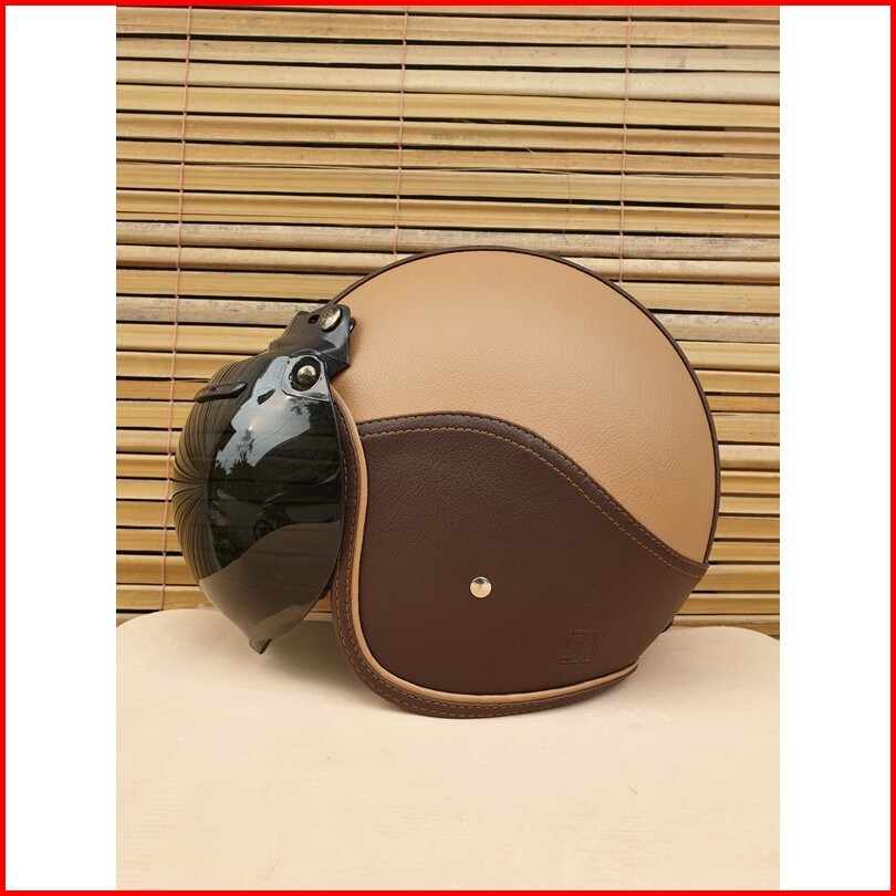 Helm Bogo Dewasa Warna Coklat Tua Coklat Muda