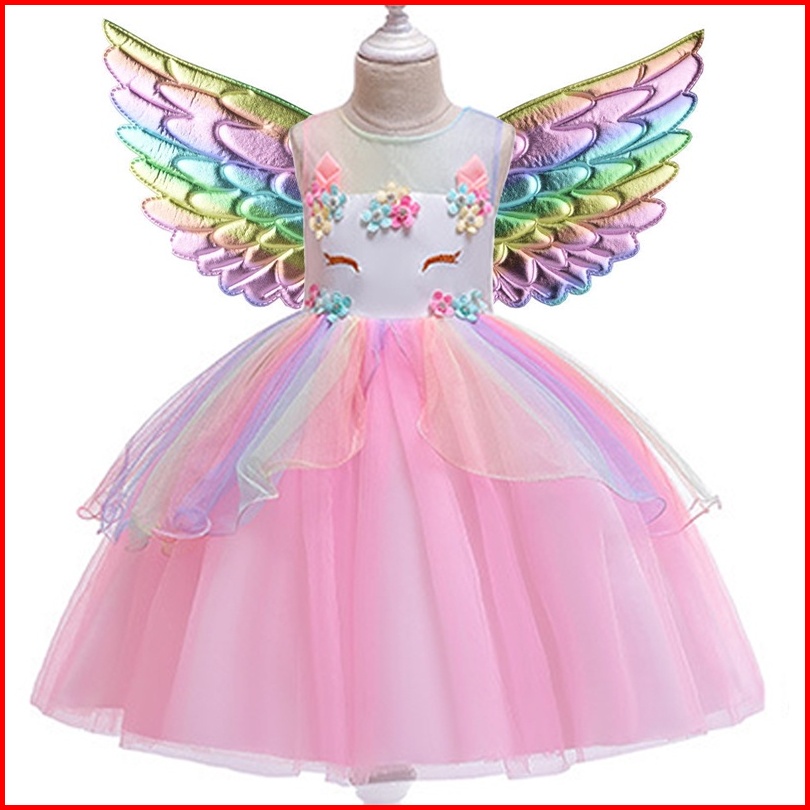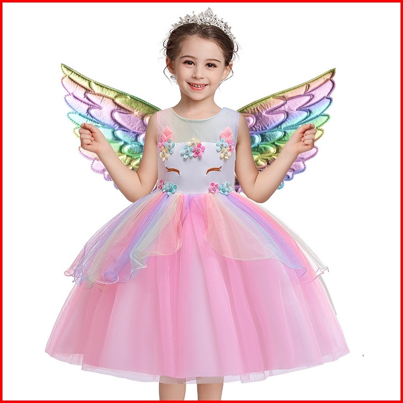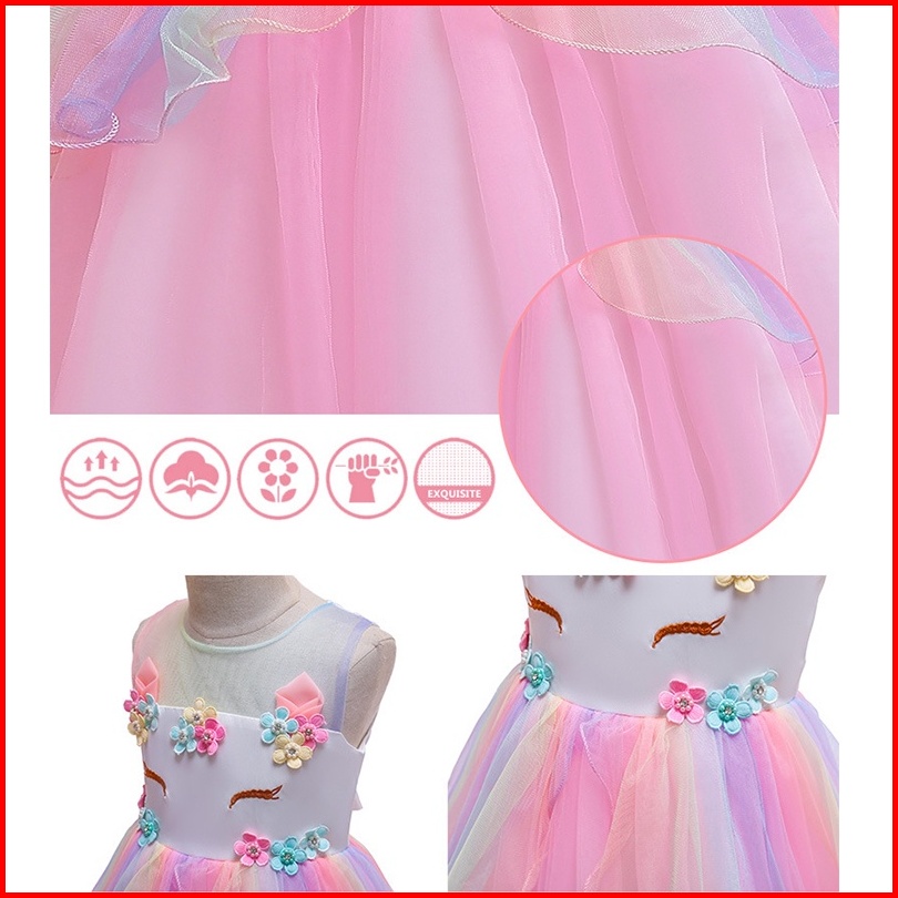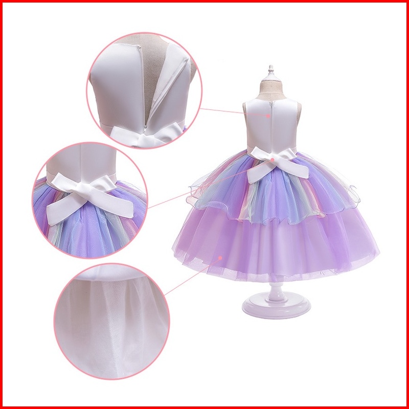 Komuni Pertama Gaun Unicorn Anak Perempuan Flower Girl Unicorn Rainbow Wedding Party Dress