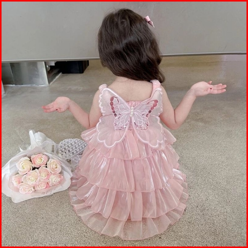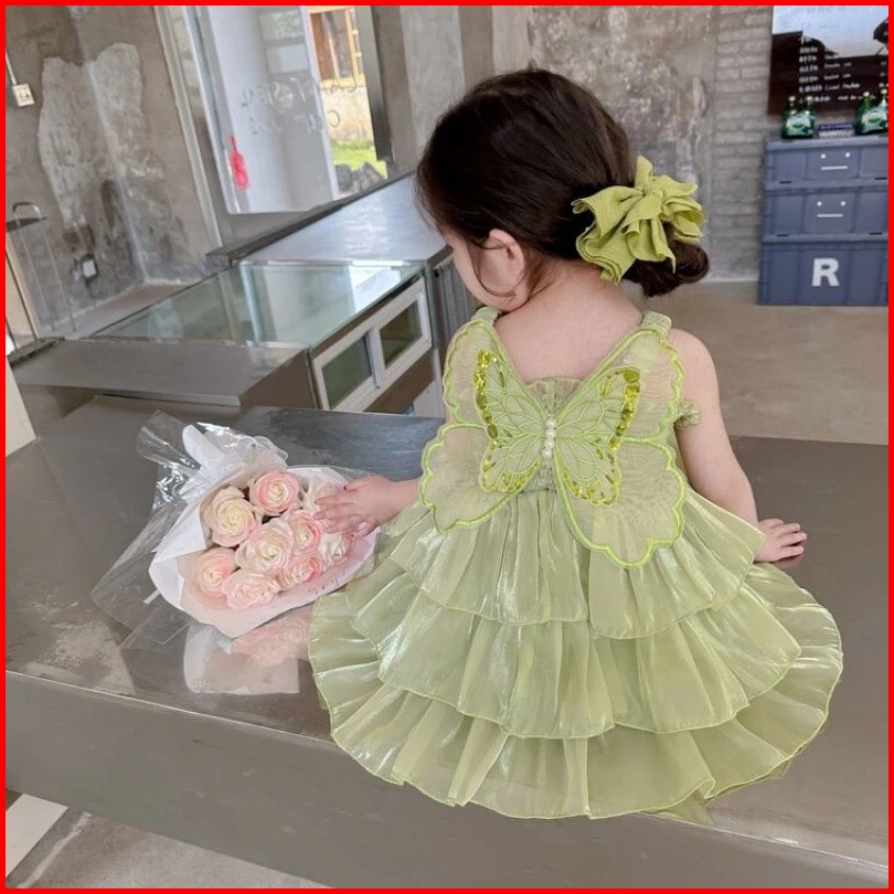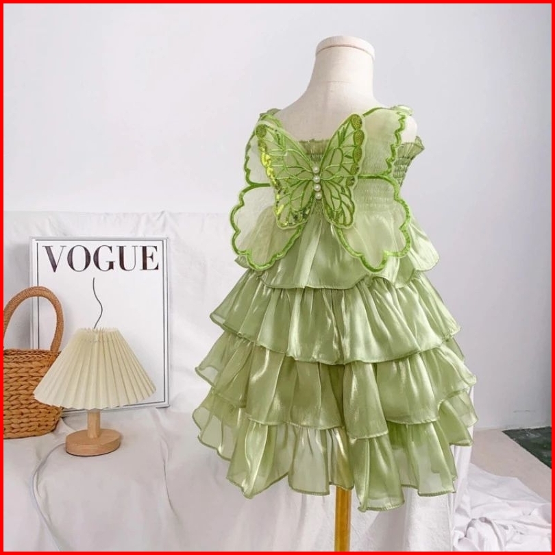 Dress Anak Kupu Kupu Hijau Dan Pink Kilat Size 1-6th Green Sege Birthday