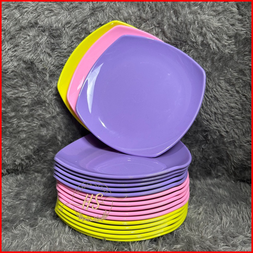 014 Promo 12 Pcs Piring Kotak Makan Melamin Segi Melamine Ceper Saji Prasmanan Piring Makan Cantik Warna Pastel