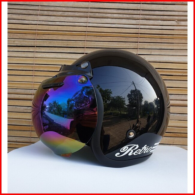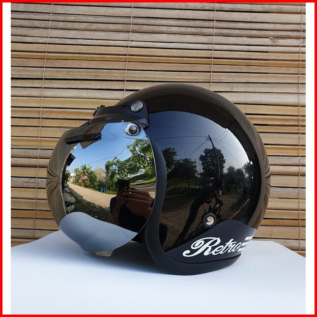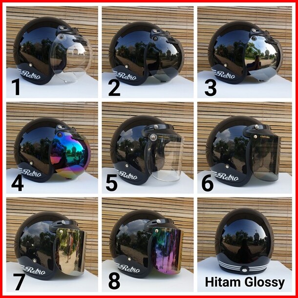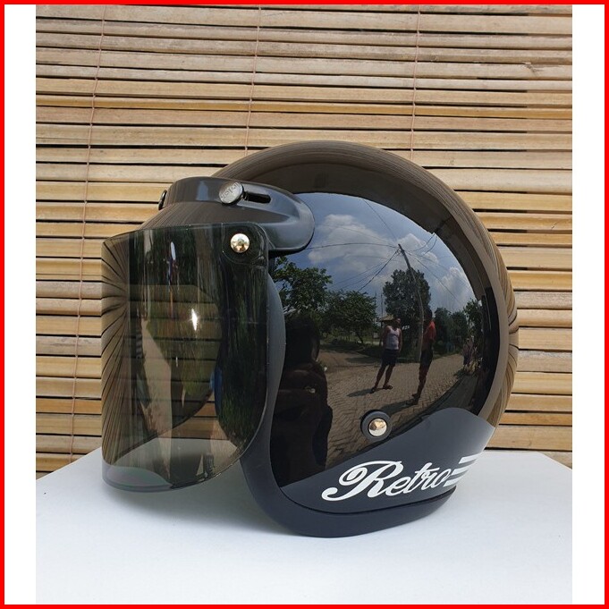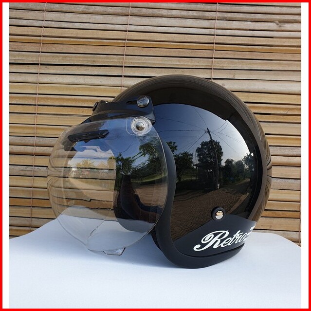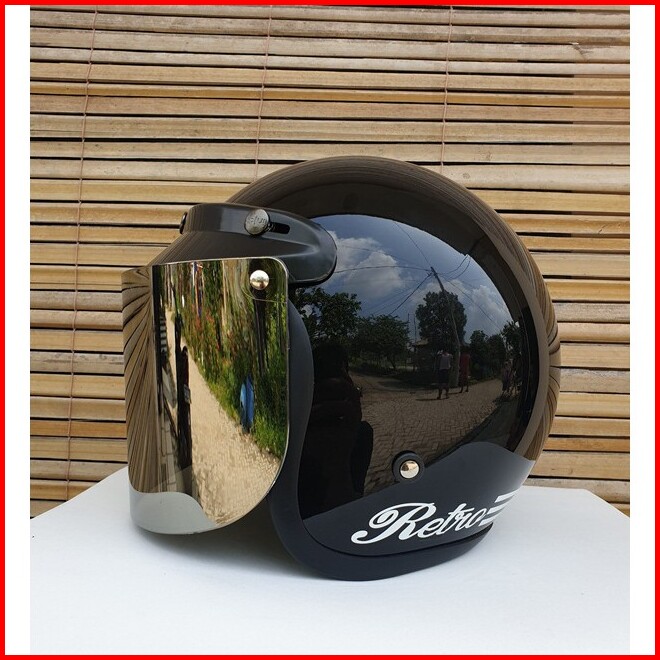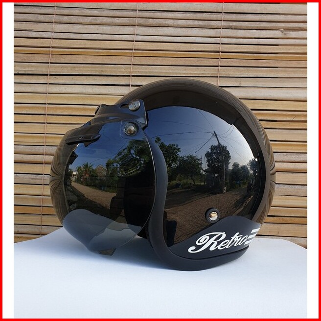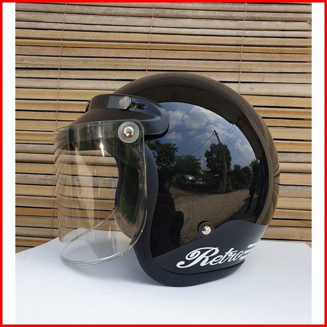 Helm Bogo Dewasa Warna Hitam Glossy Untuk Cewek Cowok Wanita Pria Motif Tulisan Retro