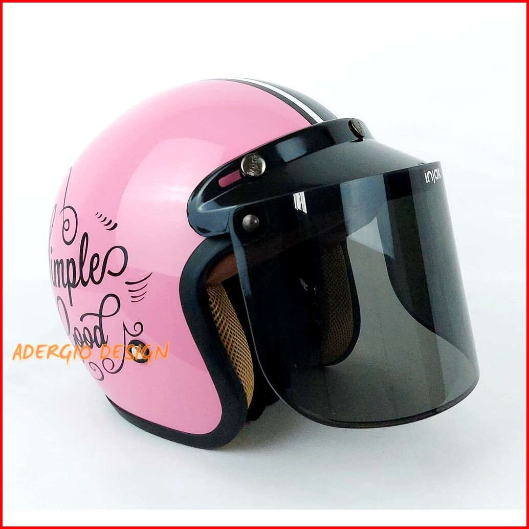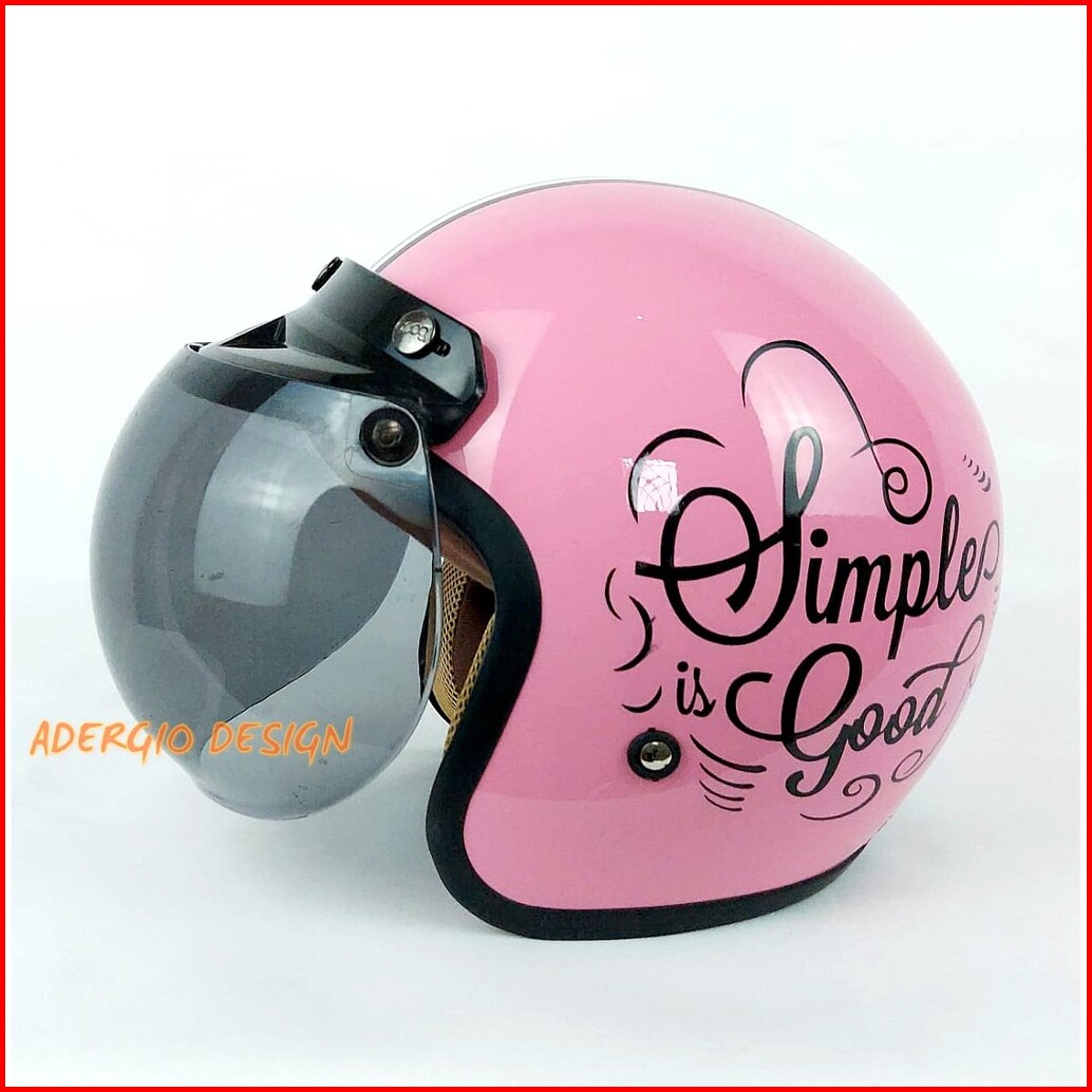 Helm Bogo Dewasa Retro Full Leher Sni Simple Is Good Pink Glossy Lh Kaca Datar Dan Cembung