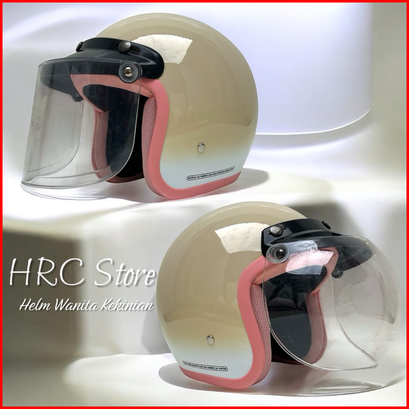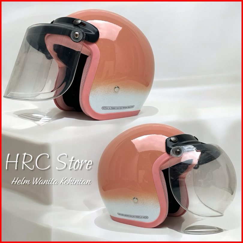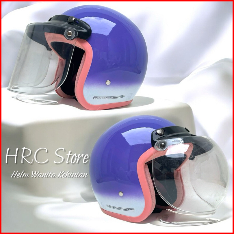Helm Wanita Hijab Gradasi Kaca Cembung Hitam Helm Bogo Dewasa Full Leher Sni