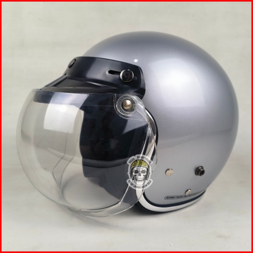 Helm Bogo Dewasa List Chrome Kaca Cembung Bening Full Leher Sni No 1
