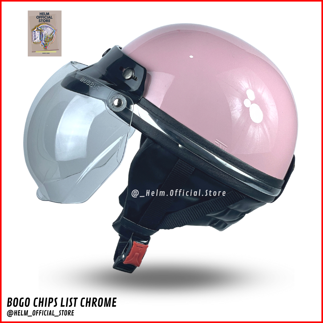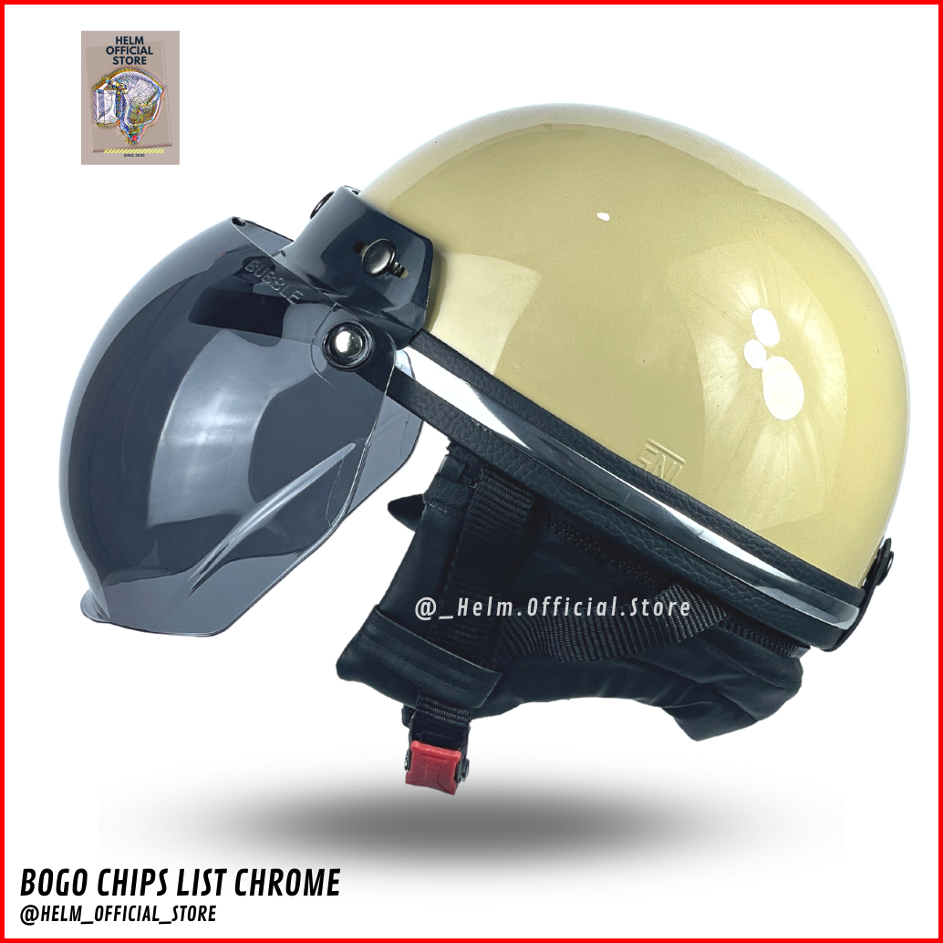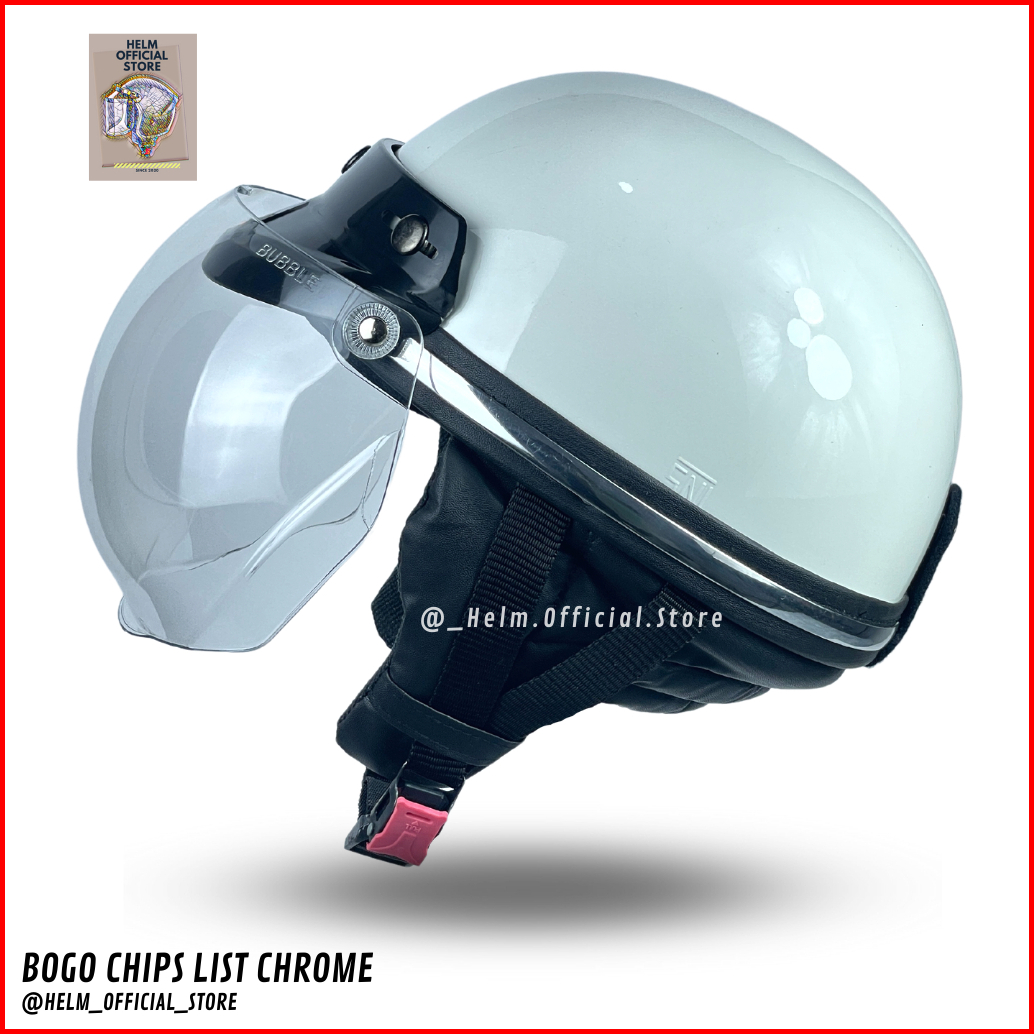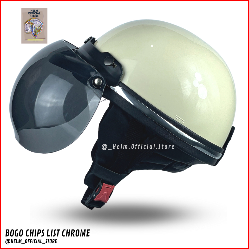 Helm Bogo Chips Dewasa Retro List Chrome Polos Kaca Cembung Hitam Bening Sni