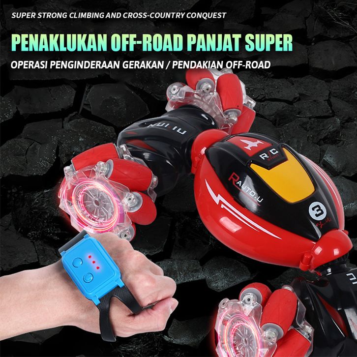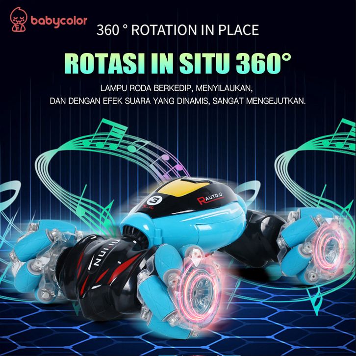 Mobil Remote RC BABYCOLOR Mobil Remote Control RC Stunt Car Akrobat Sensor Tangan 360° RC Off Road Dengan Lampu 4WD