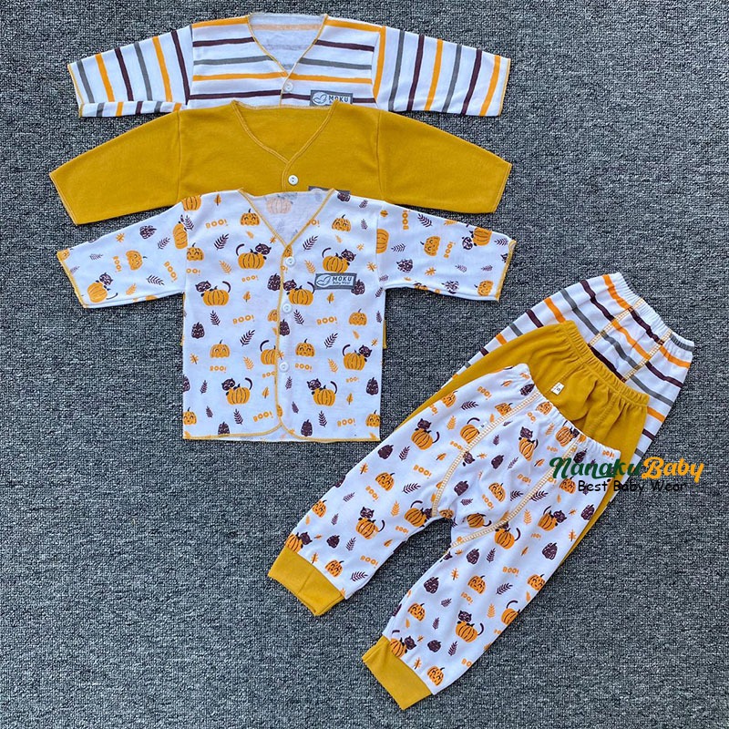 Nanaku Baby - Paket Isi 6 PCS Baju Bayi Newborn / 3 PCS Baju Panjang 3 PCS Celana Panjang Series Yellow Usia 0-3 Bulan
