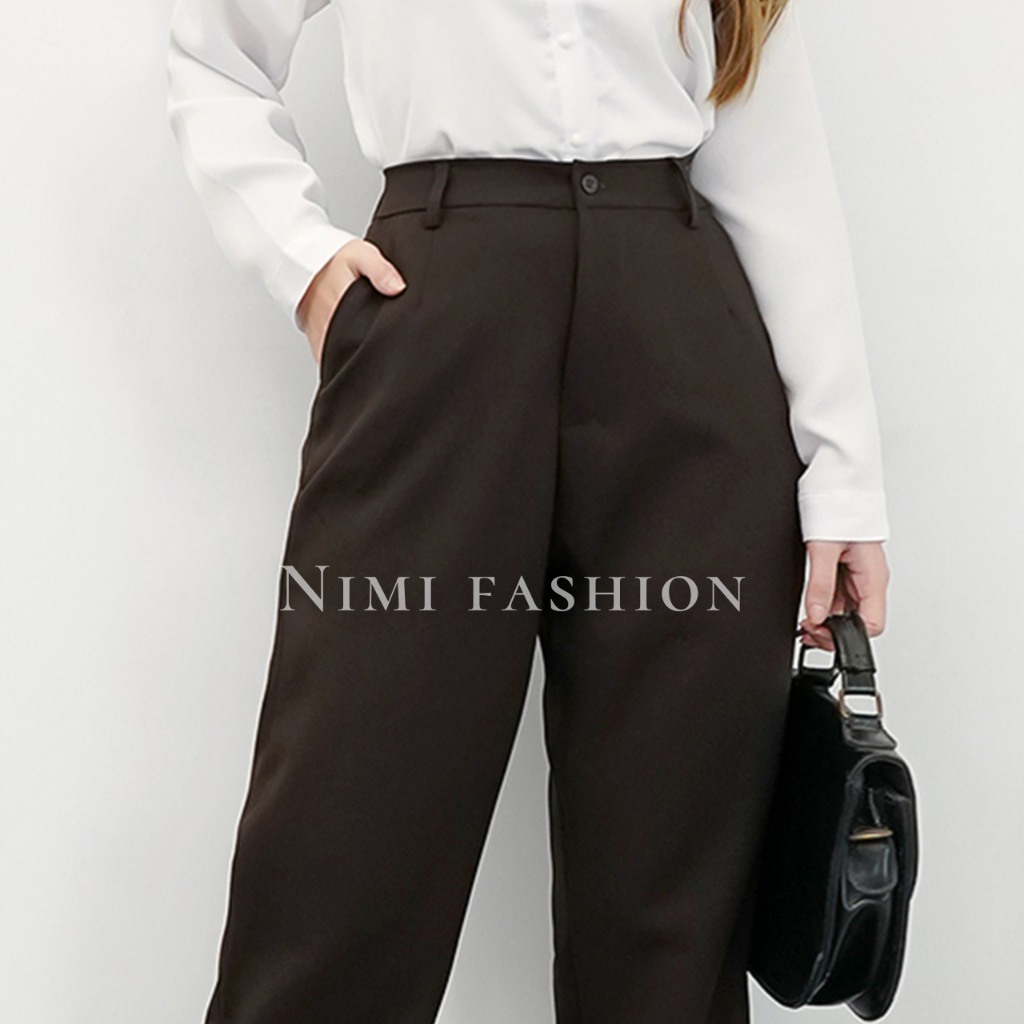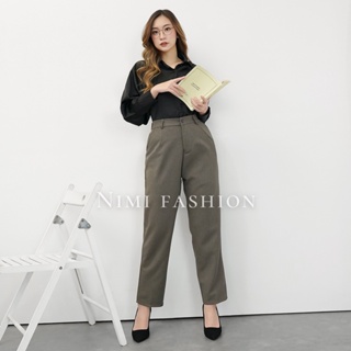 (Gratis Ongkir) NIMI - Celana Bahan Kerja Wanita Pinggang Karet Belakang Celana Kantor Wanita Stretch Premium
