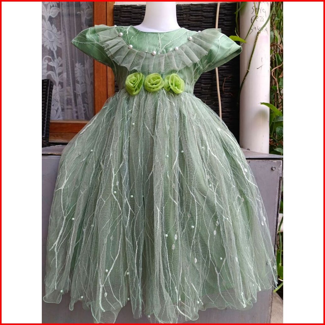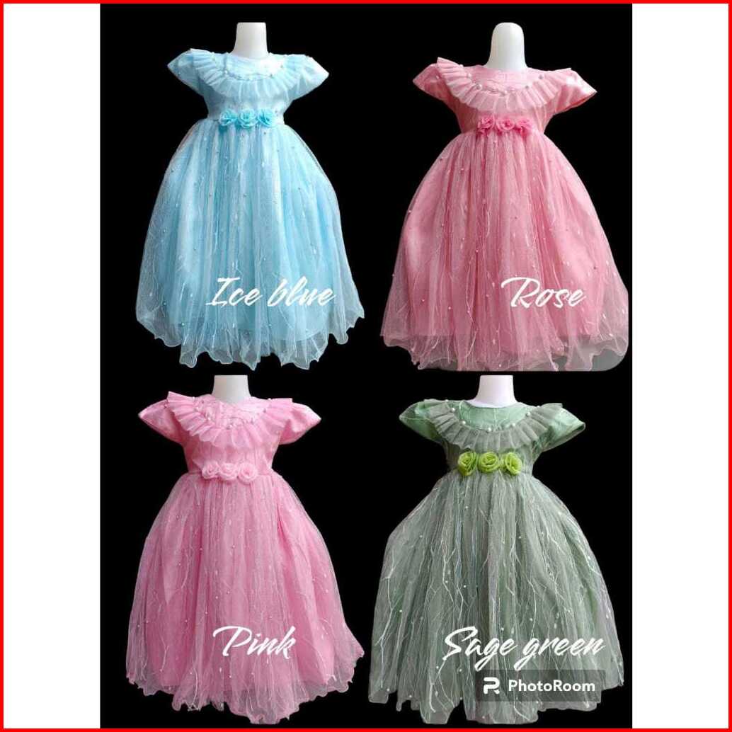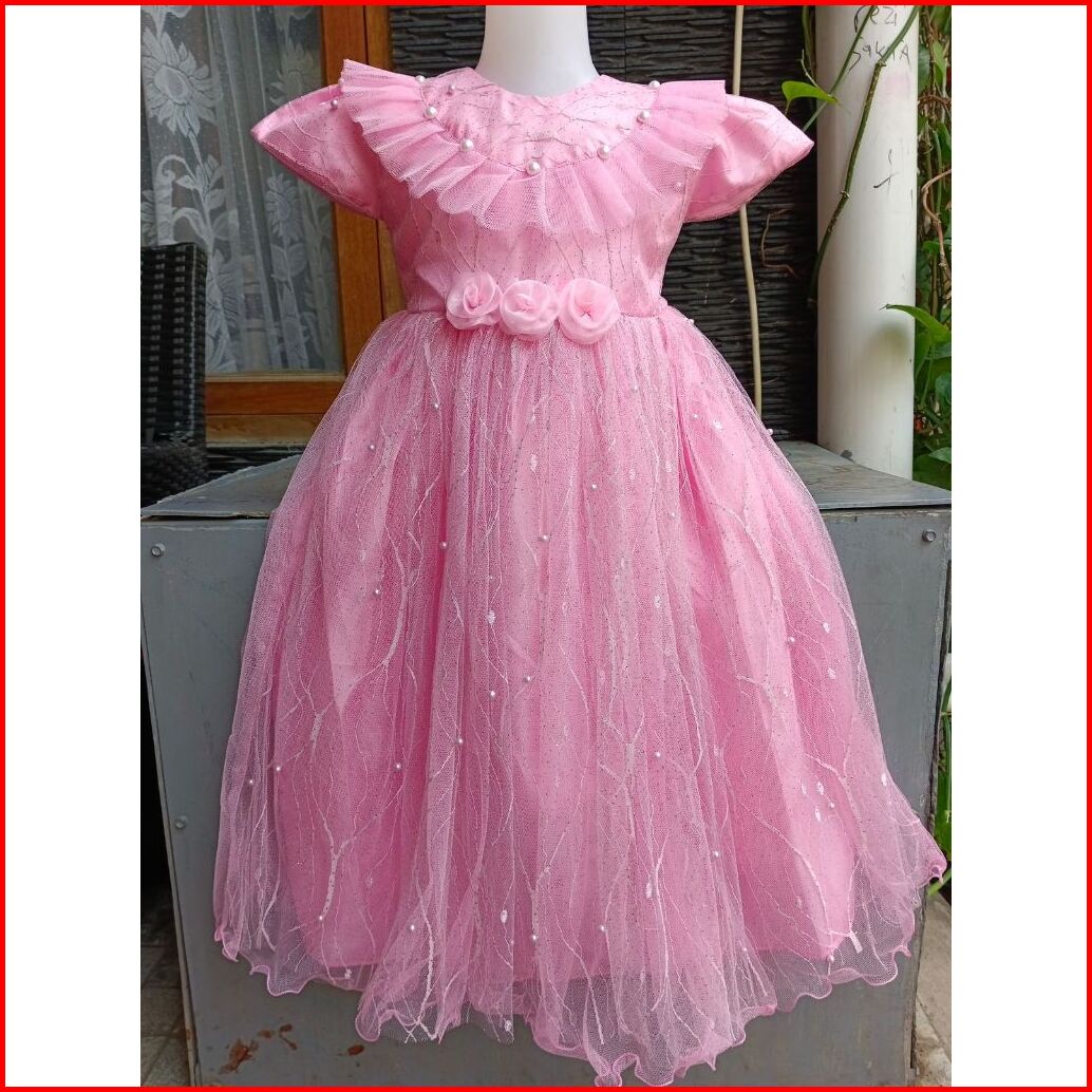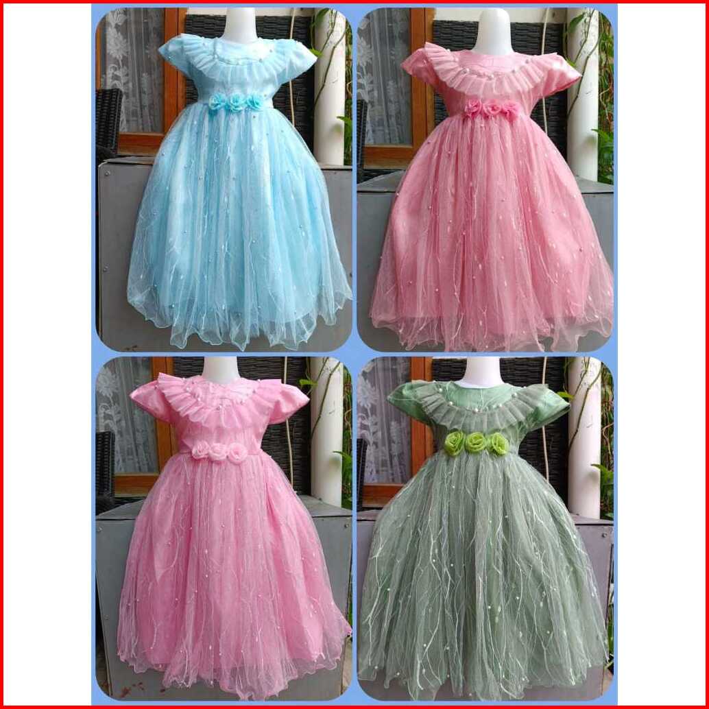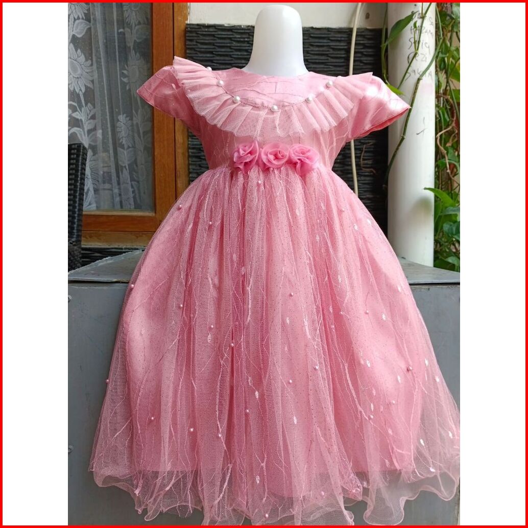 Gaun Pesta Anak Perempuan Dress Mutiara Cantik Tile Akar Melati Usia 3-10 Tahun