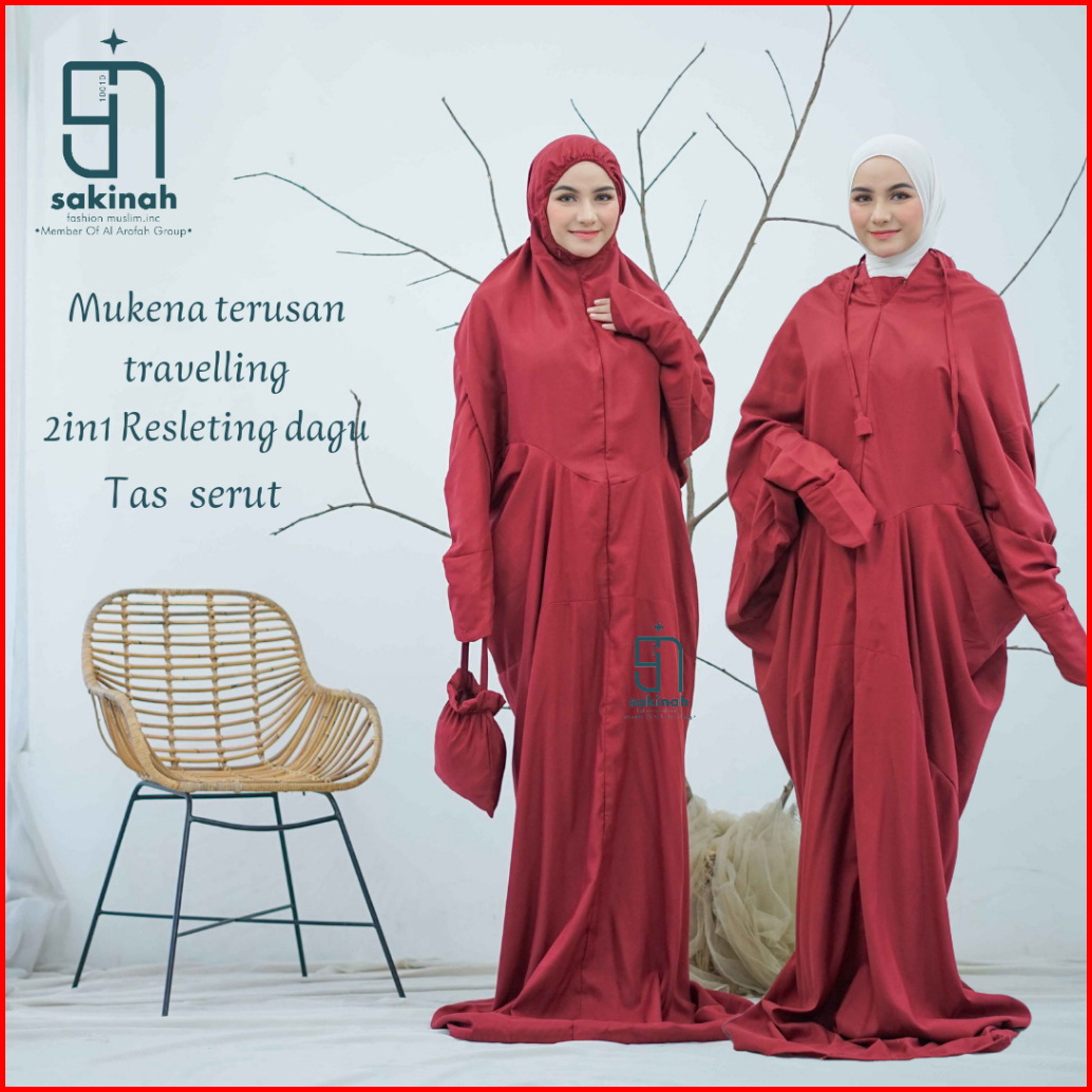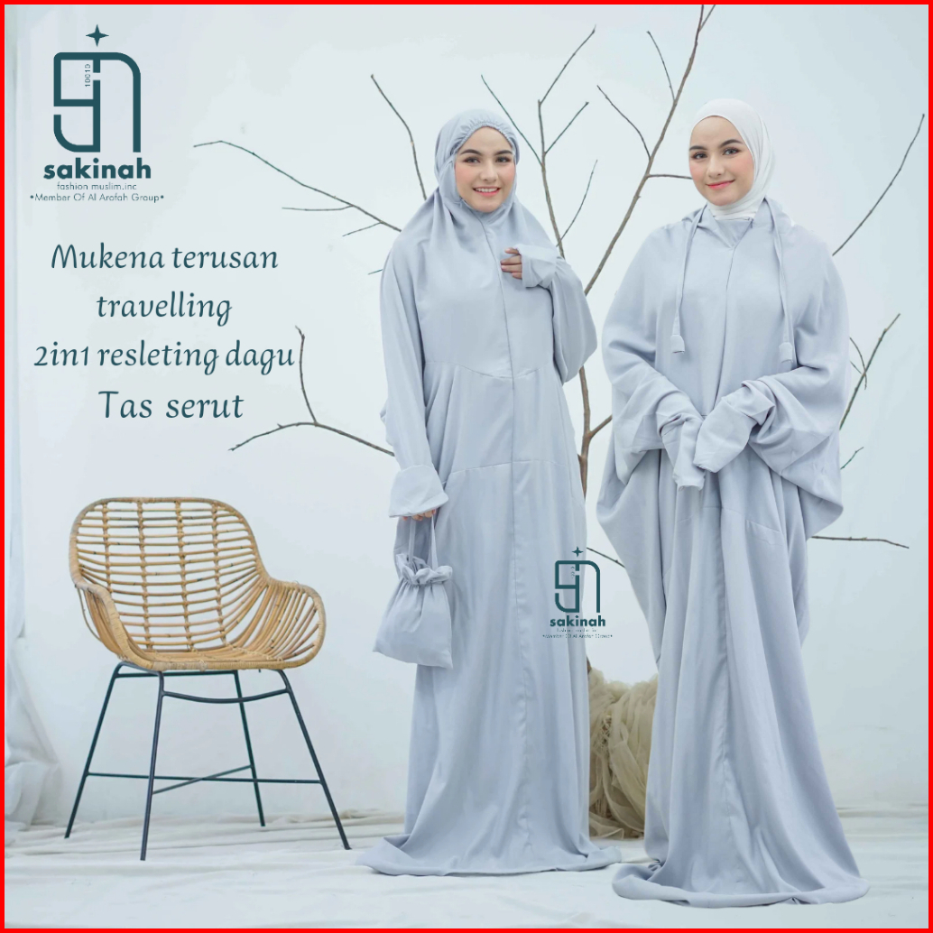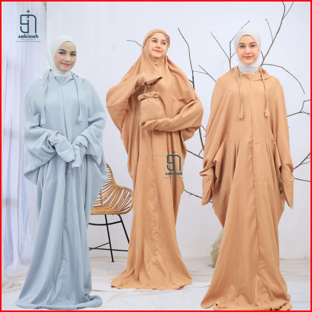 Sakinah - Mukena Terusan Dewasa Jumbo Travelling 2in1 Resleting Dagu Katun Polos