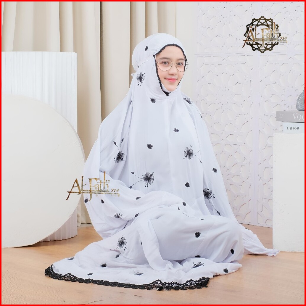 Mukena Terusan Dewasa Bordir Bunga Ardhelia Mukenah Lajuran Jumbo