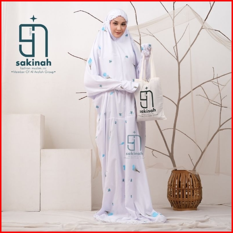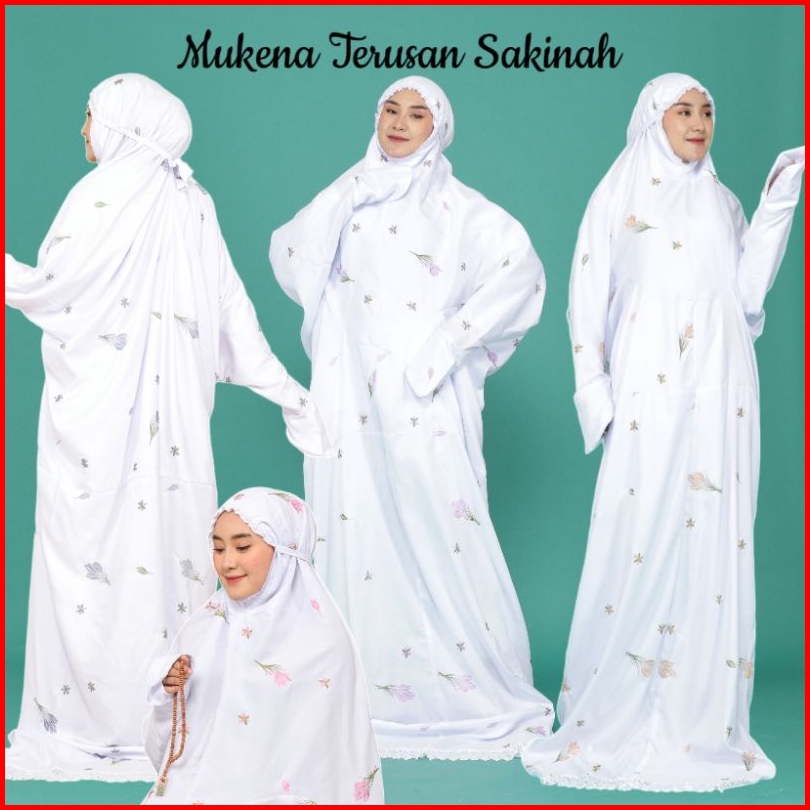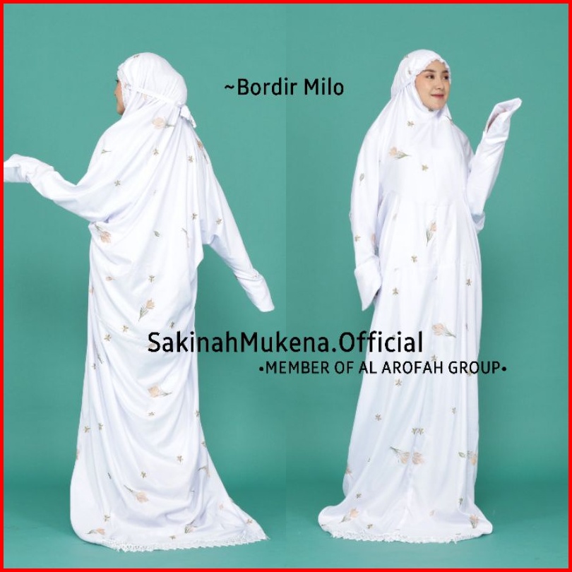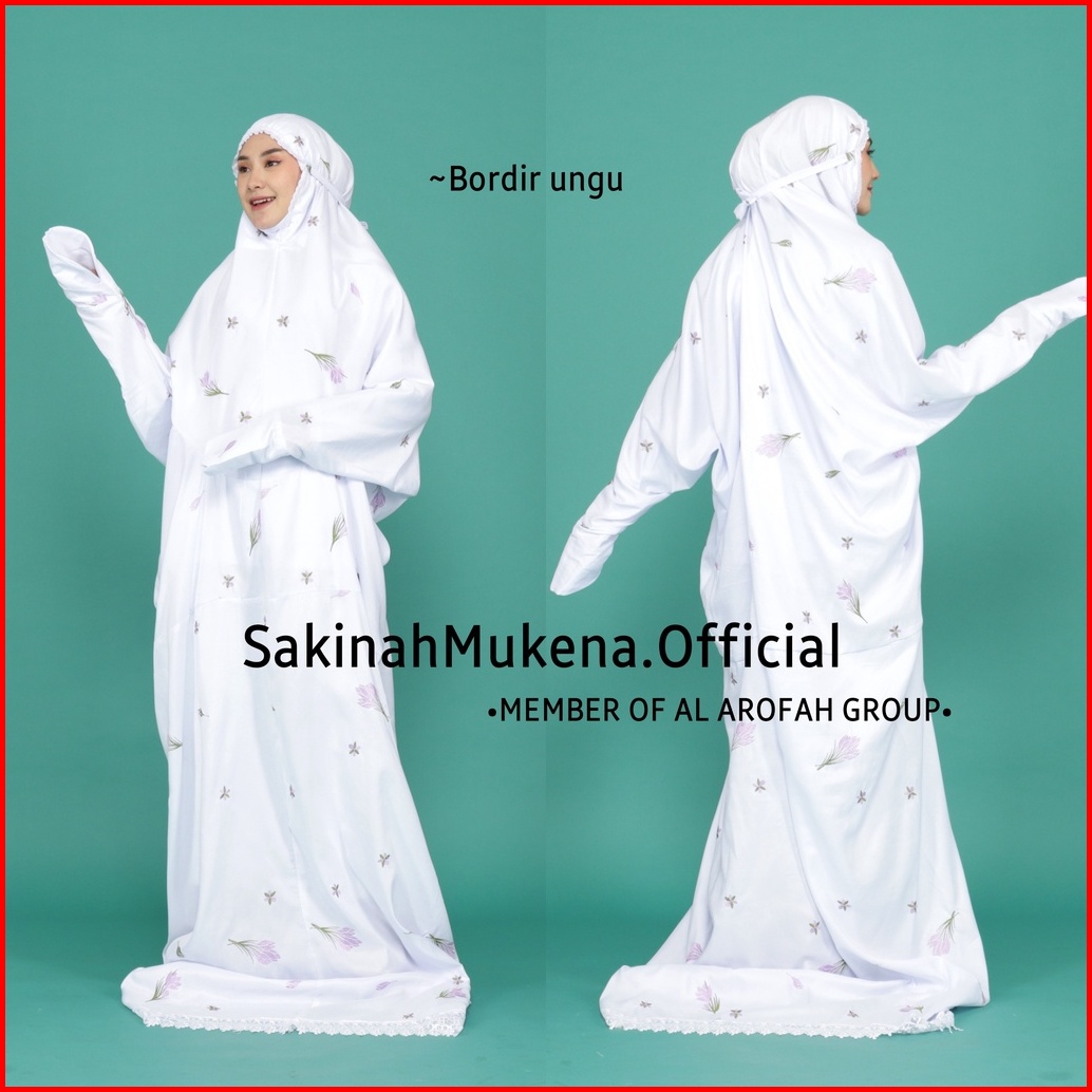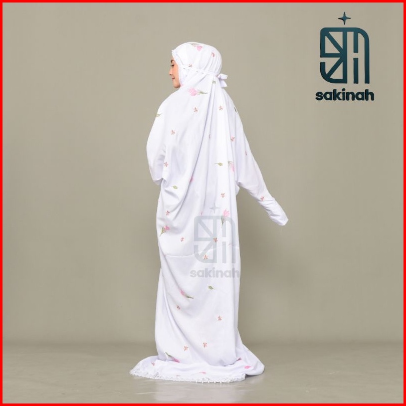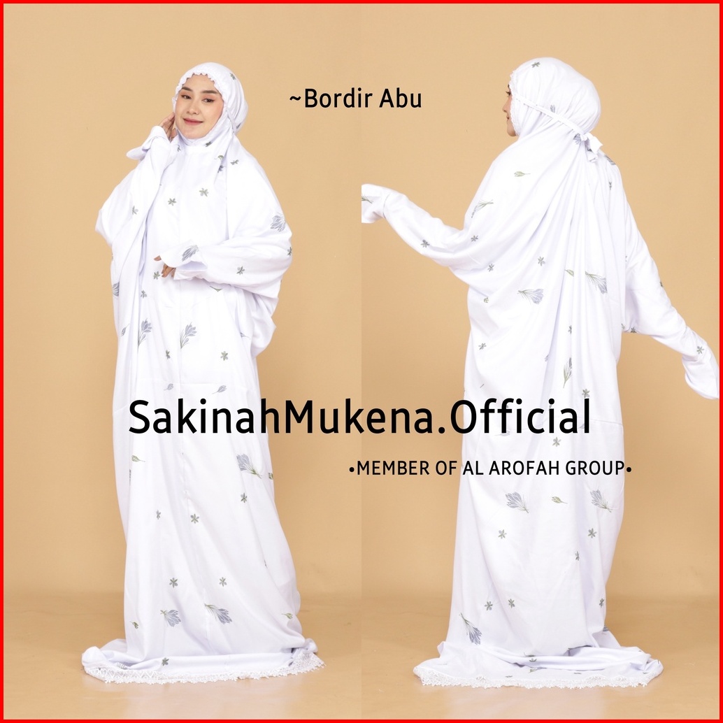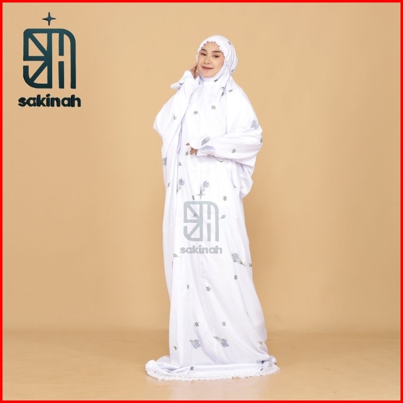 Sakinah - Mukena Putih Lajuran Dewasa Jumbo Bordir Bunga Saffron Terbaru Katun Premium