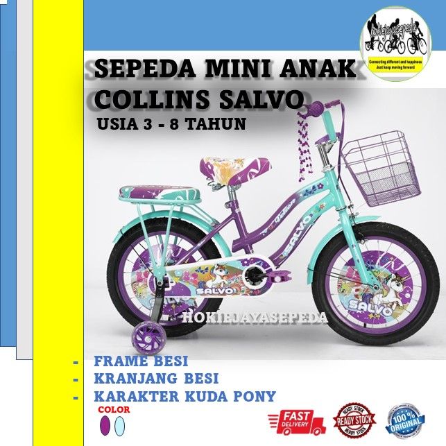 Sepeda Anak Mini COLLINS SALVO CSV PONY dengan kranjang besi dan boncengan anak usia 4 tahun 8 tahun FREE BOTOL AIR