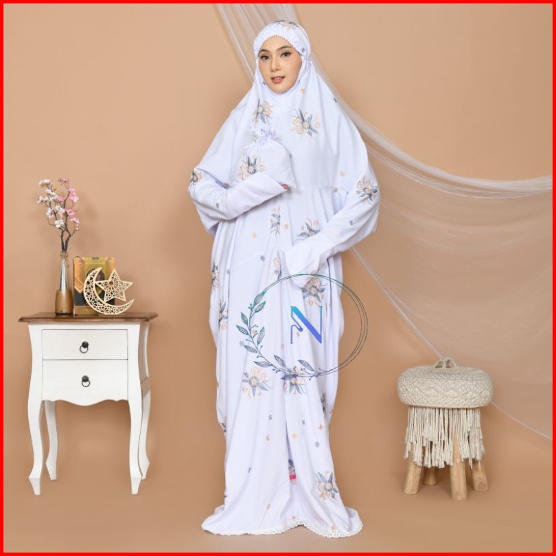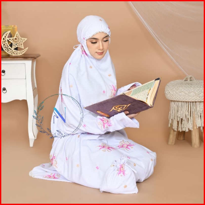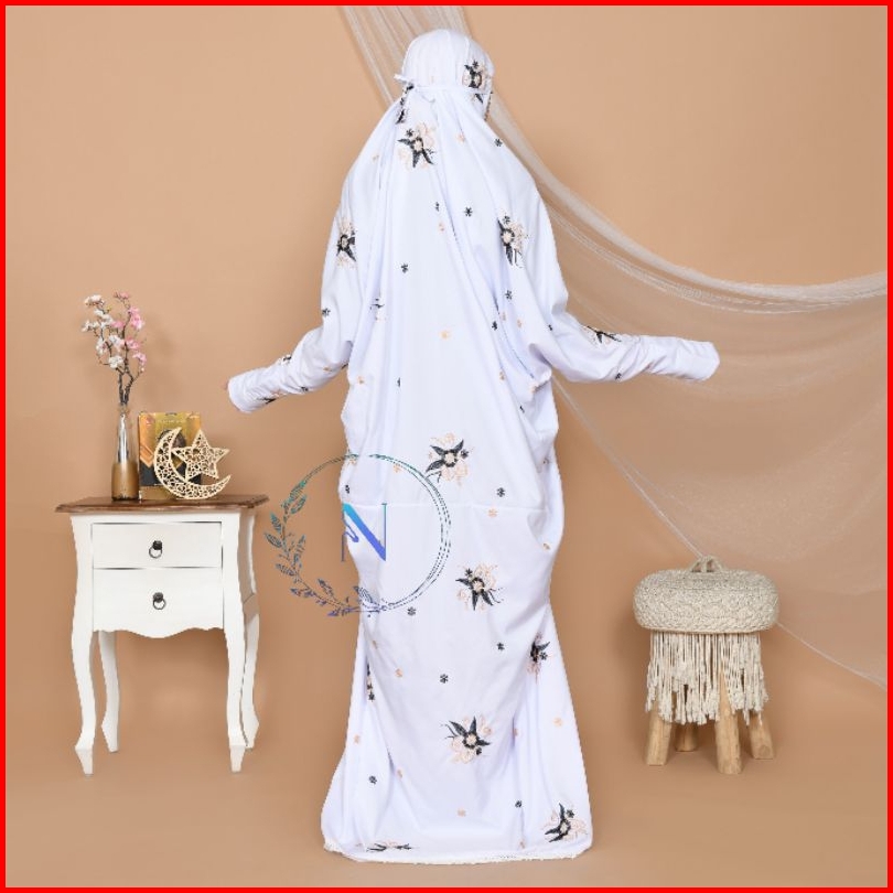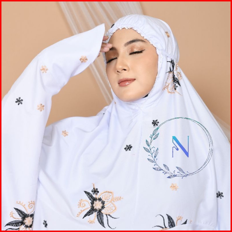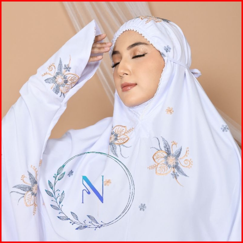 By Nadeera Mukena-mukena Terusan Dewasa Katun Bordir Bunga Serangkai Mukena Langsungan Dewasa