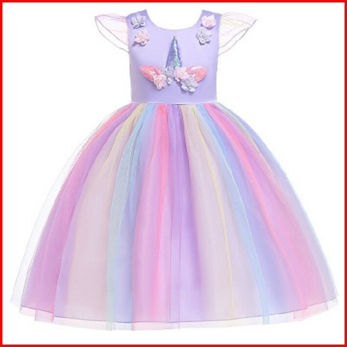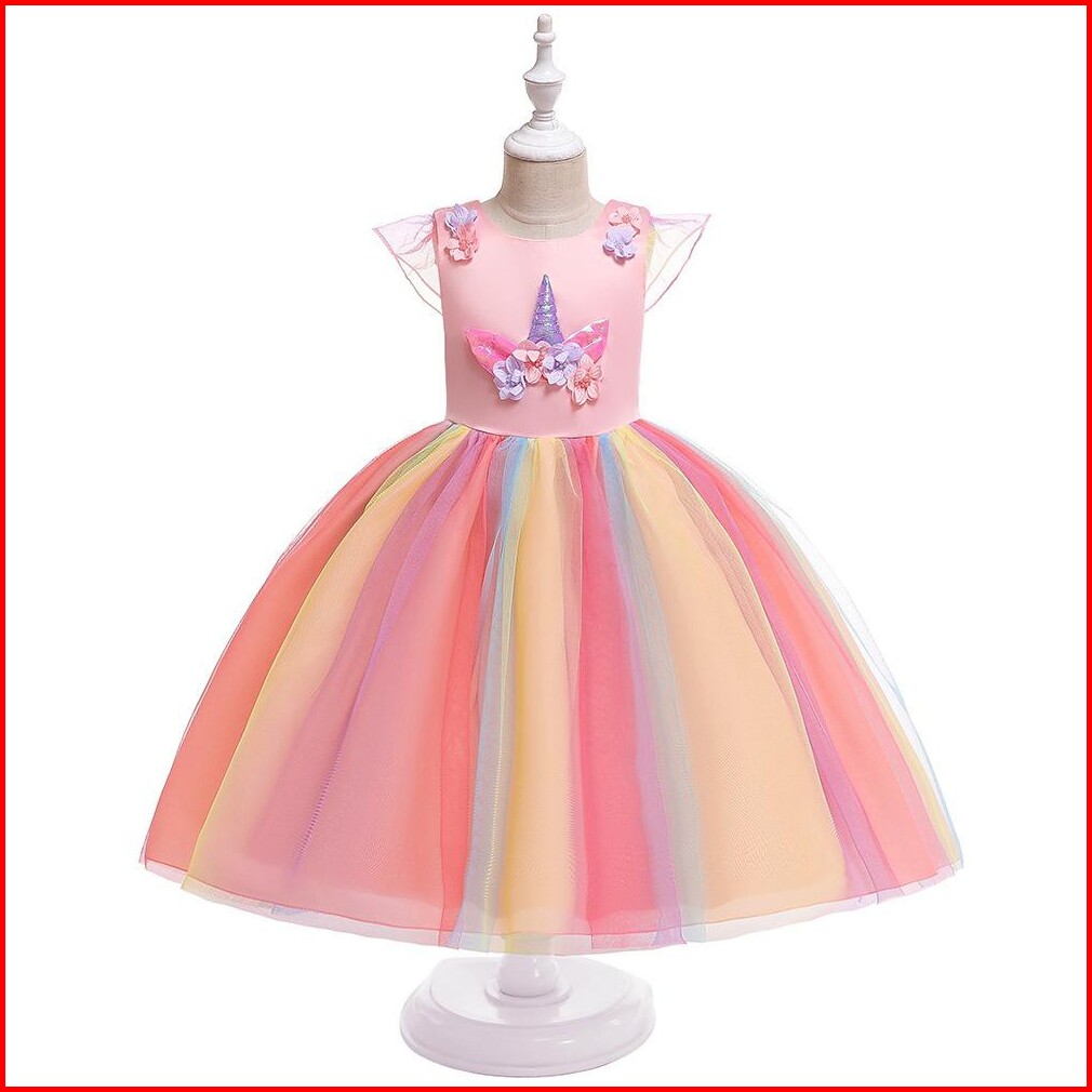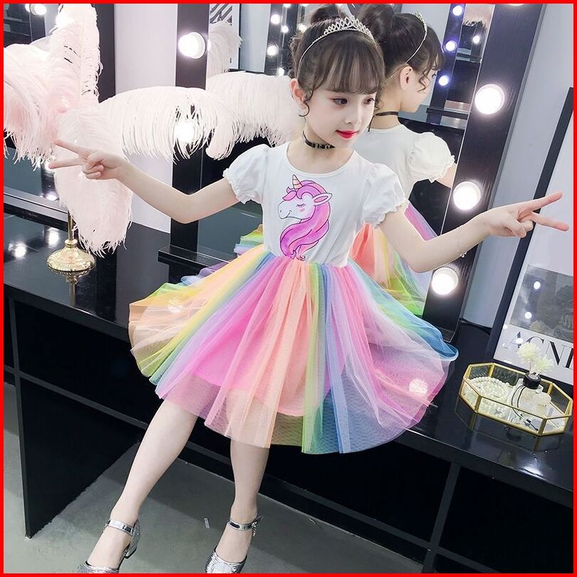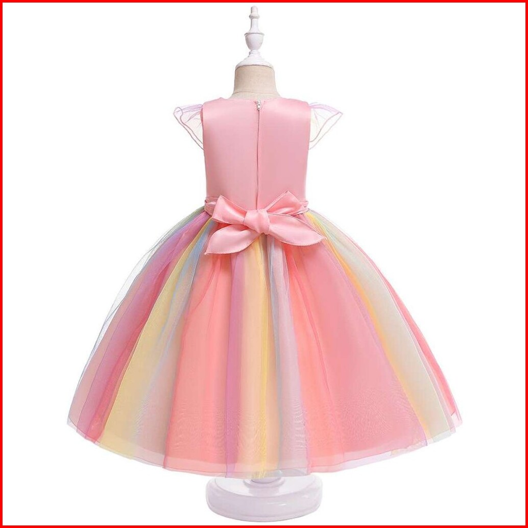Dress Anak Perempuan Unicorn Gaun Baju Pesta Anak Gadis Warna Warni Pelangi Tanpa Lengan