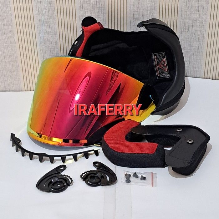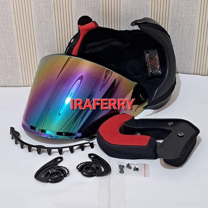 busa helm nhk r6 kancing plastik + kaca nhk r6 flat visor - PAKET HITAM KANCING PLASTIK