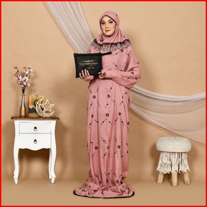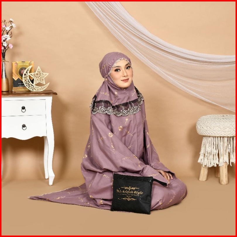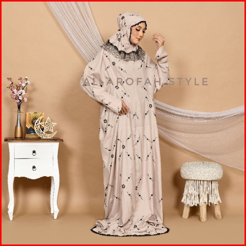 Al Arofah Mukena Terusan Dewasa Lajuran Amora Bordir Mewah Katun