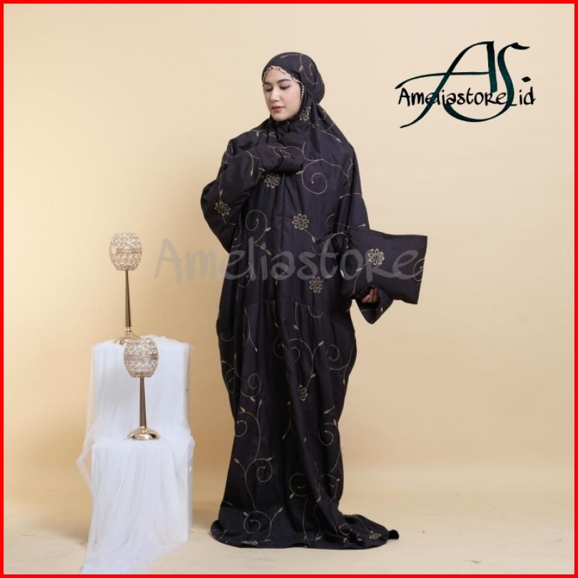 Ameliastore - Mukena Dewasa Terusan Gracella Bunga Teratai Katun Premium
