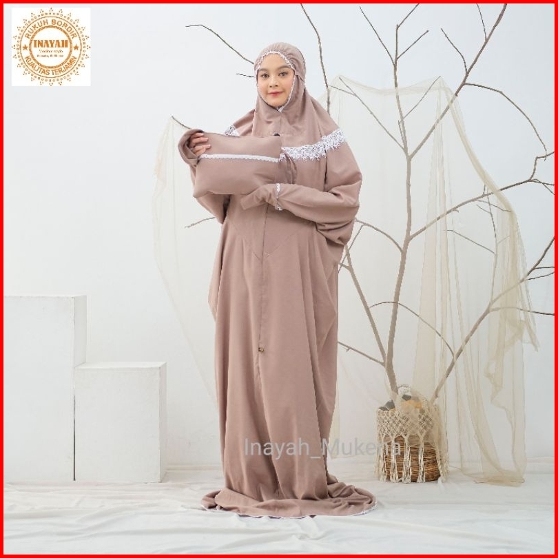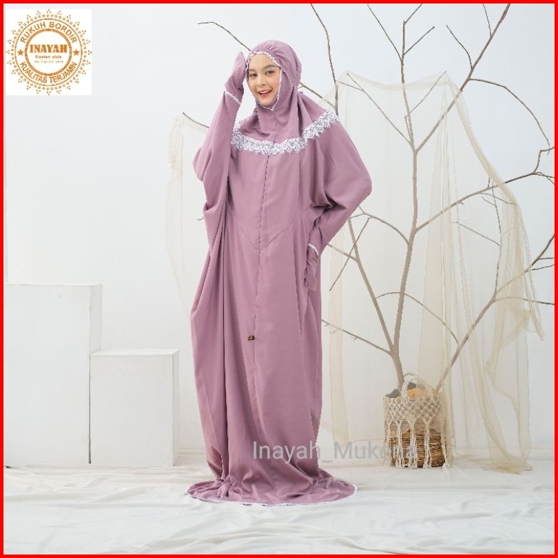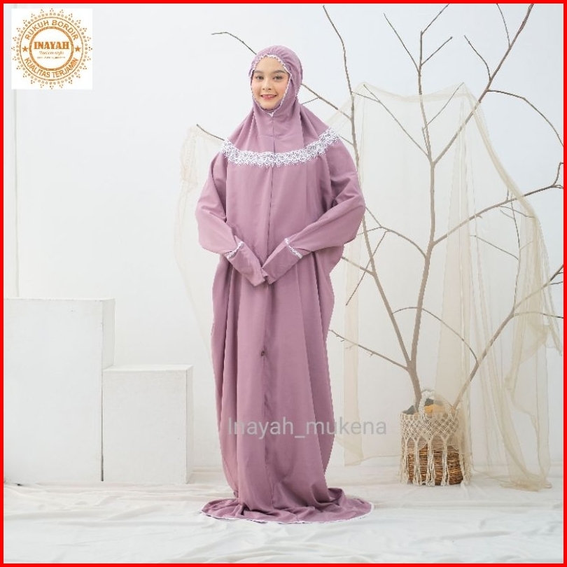 Inayah - Mukena Terusan Dewasa Katun Premium Renda Kalung