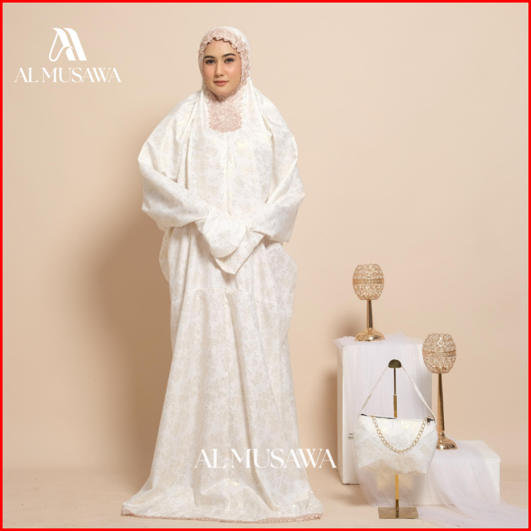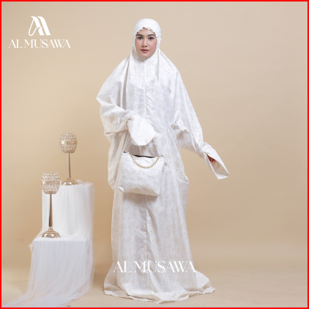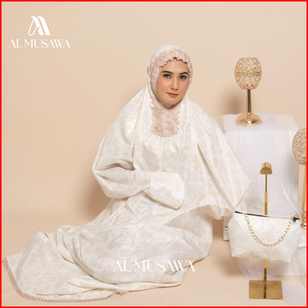 Mukena Dewasa Terusan Sutra Foil Renda Mewah Travelling