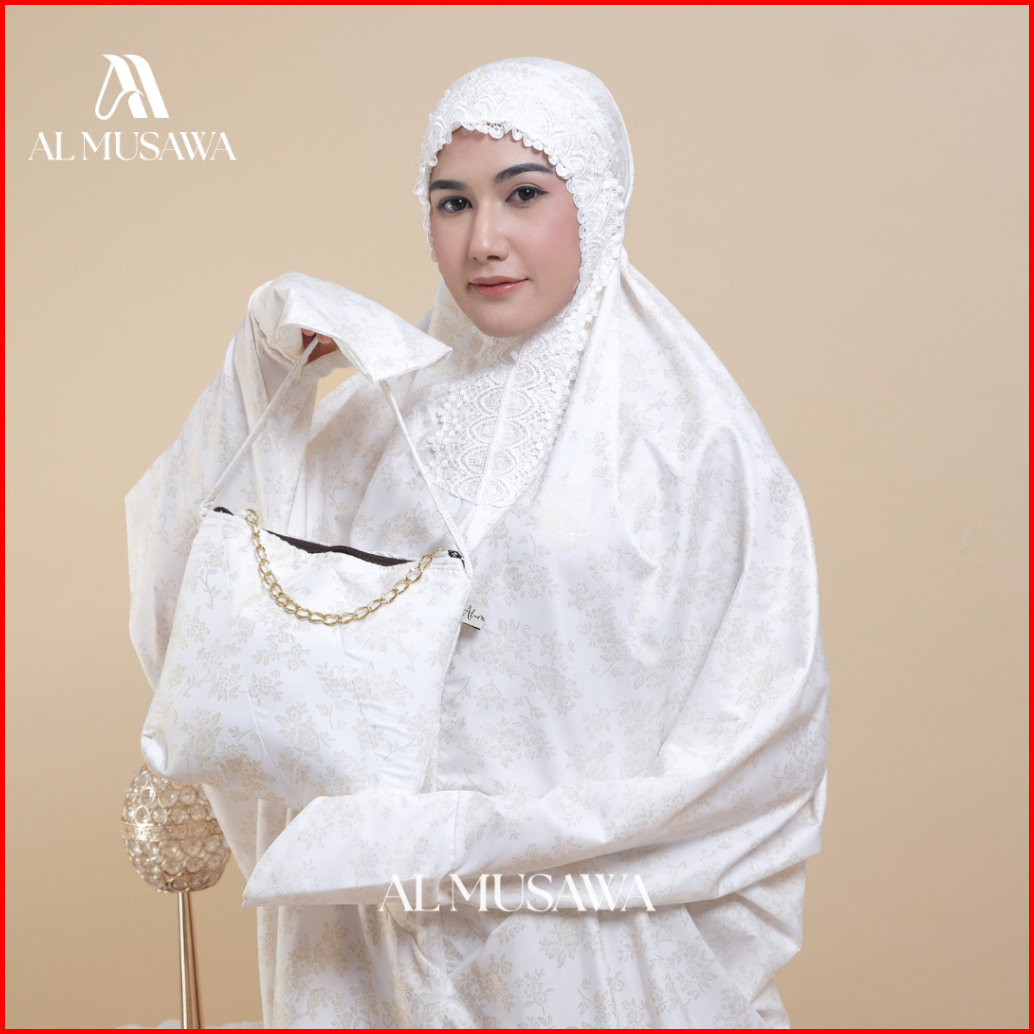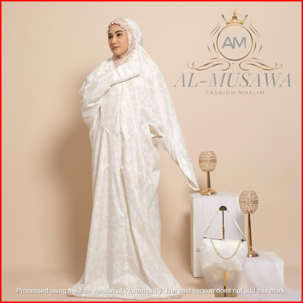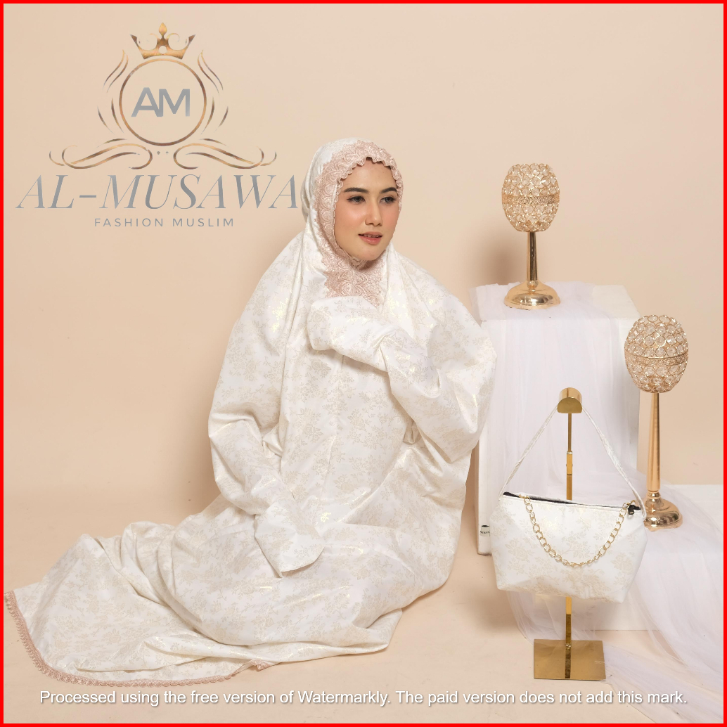 Mukena Dewasa Terusan Sutra Foil Renda Mewah Travelling